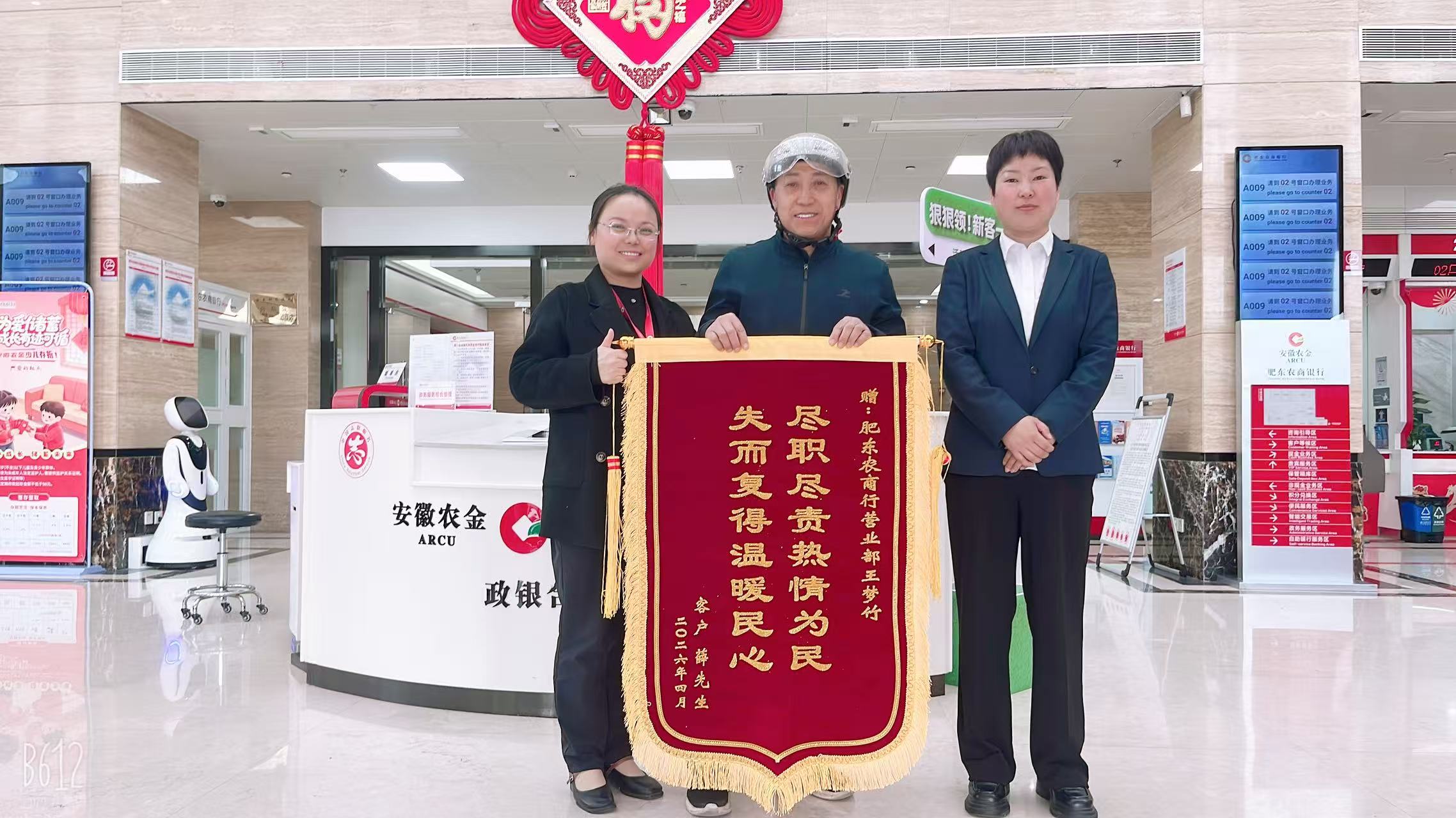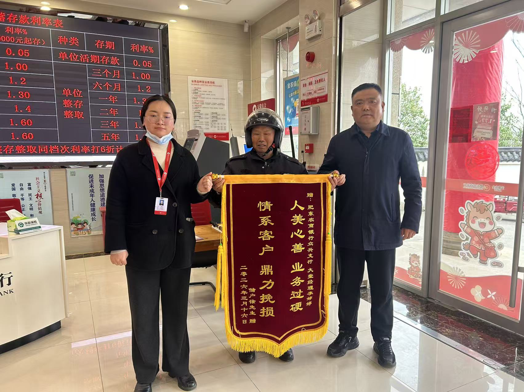 肥东农商银行:高效服务挽损失,锦旗致谢暖人心