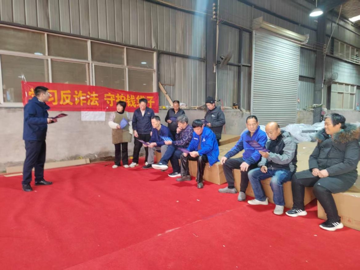 近日,阜阳颍东农商银行阜南支行走进阜南双乔木业有限公司,开展了一场“精准滴灌”式的反诈宣传活动,为企业员工送上了一堂生动实用的金融安全“必修课”。