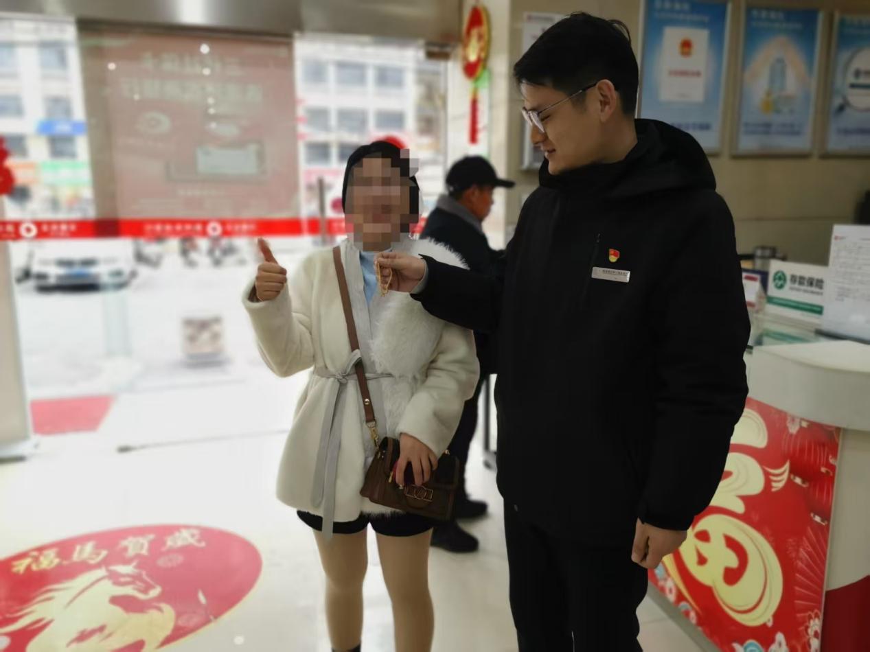 近日,淮南淮河农商银行九华山路支行上演了一幕暖心场景:客户刘女士在支行办理业务后不慎遗失一条黄金手链,银行保安在下班打扫卫生时及时发现并上交,支行行长及主管会计迅速行动,通过调取监控找到失主,最终将手链完璧归赵,用实际行动践行了“客户至上”的服务理念。