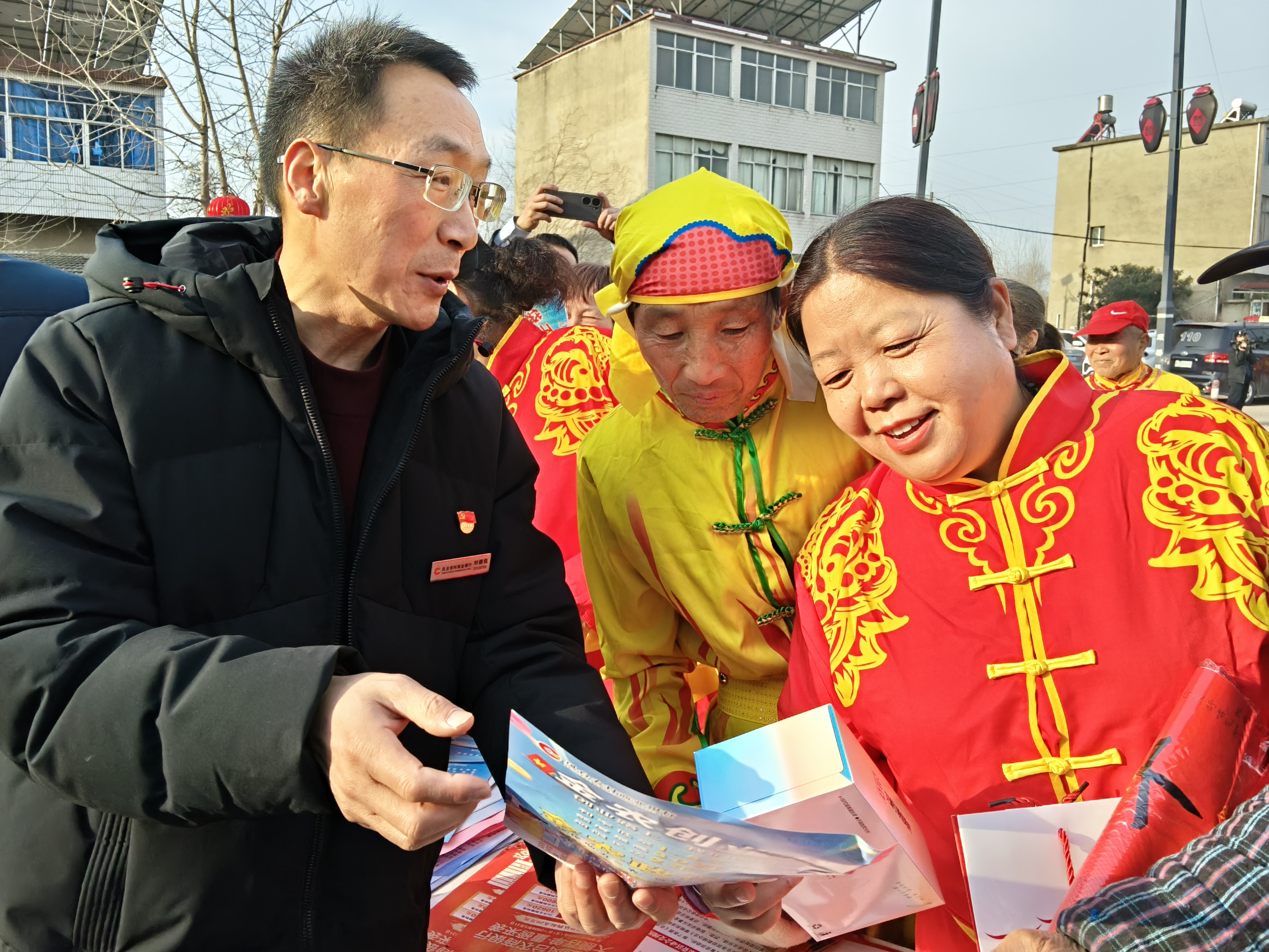2月4日,2026年顾桥镇迎新春民俗文化活动盛大启幕,现场锣鼓铿锵、彩扇翩跹,花鼓灯、舞龙等民俗表演轮番登场,凤台农村商业银行顾桥支行携手地方村委在这节日契机,开展金融知识宣传与服务推广,让金融暖流融入民俗盛宴。
