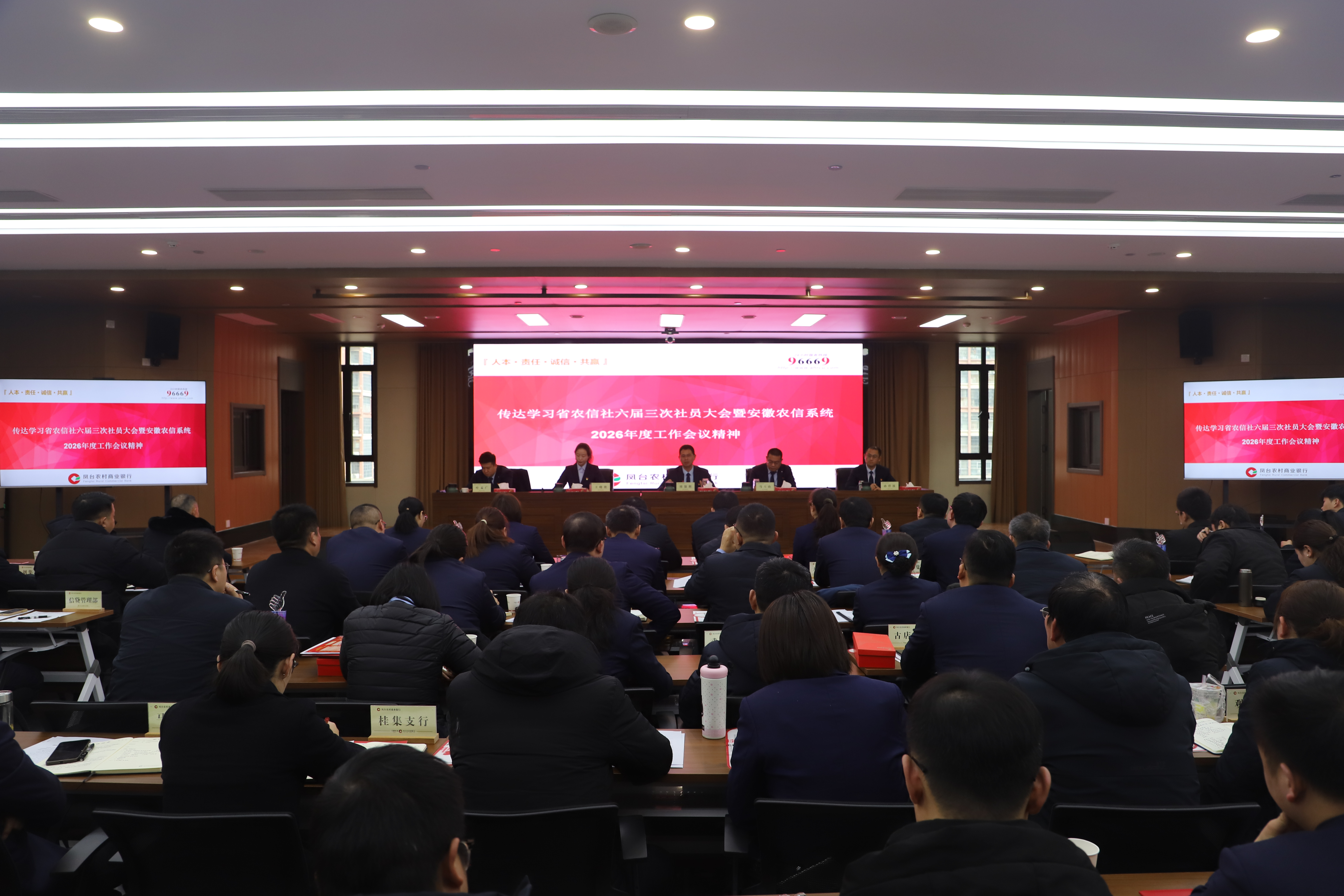 新春启新程,奋进正当时。2月7日上午,凤台农村商业银行召开会议传达省农信社六届三次社员大会暨安徽农信系统2026年度工作会议精神。总行领导班子成员、支行行长、部门总经理、先进员工代表参加会议。