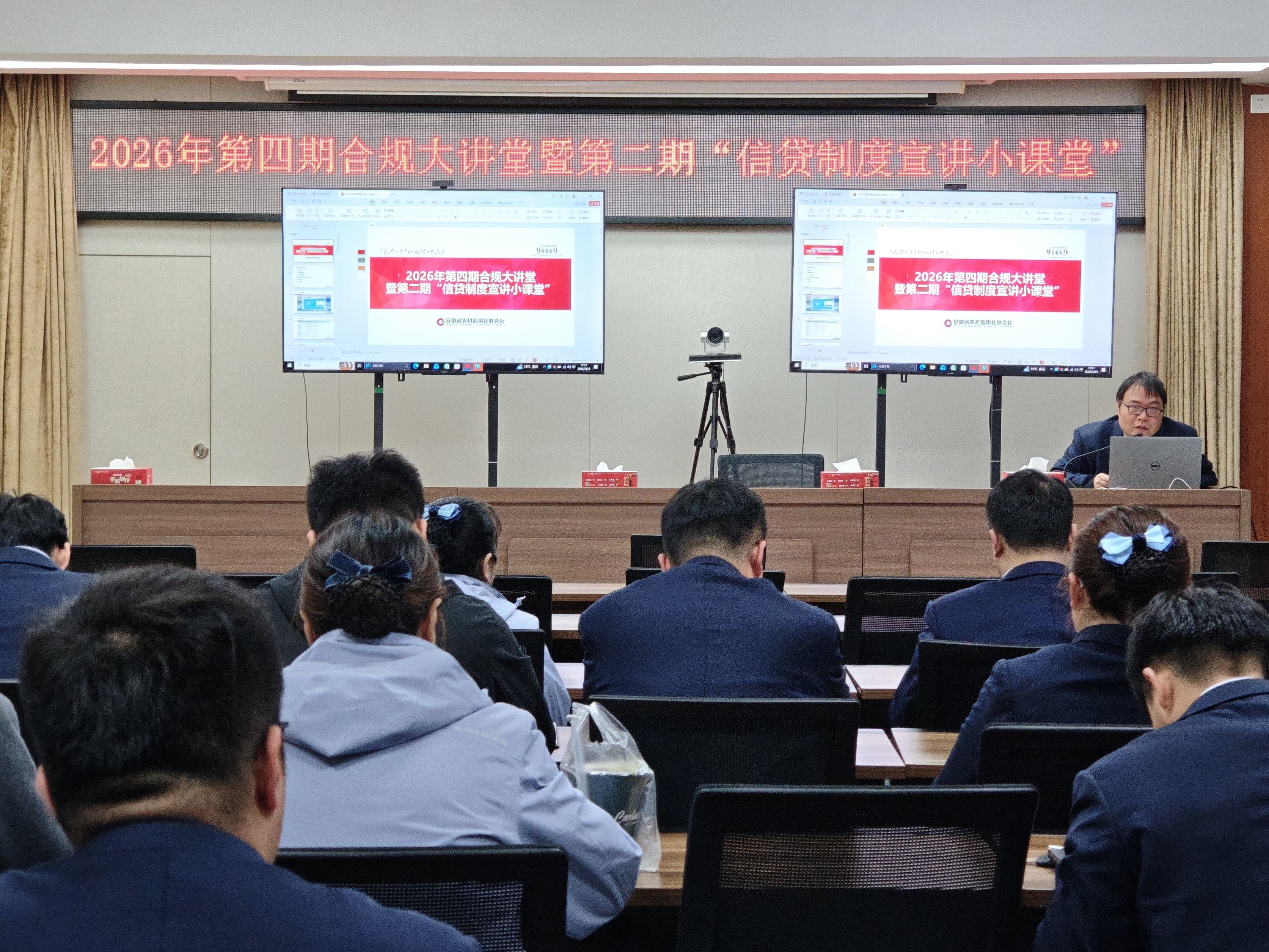 3月23日,凤台农商银行开设2026年第四期合规大讲堂暨第二期信贷制度宣讲小课堂,总行部分员工及有贷支行主管会计参会。