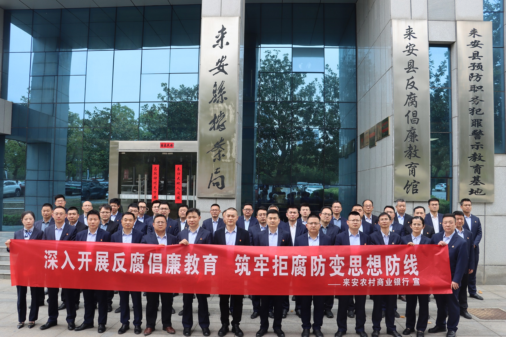 4月16日下午,来安农商银行组织行党委班子成员、各部门及网点中层干部、部分关键岗位人员共50余人,前往来安县反腐倡廉教育馆,现场接受警示教育。
