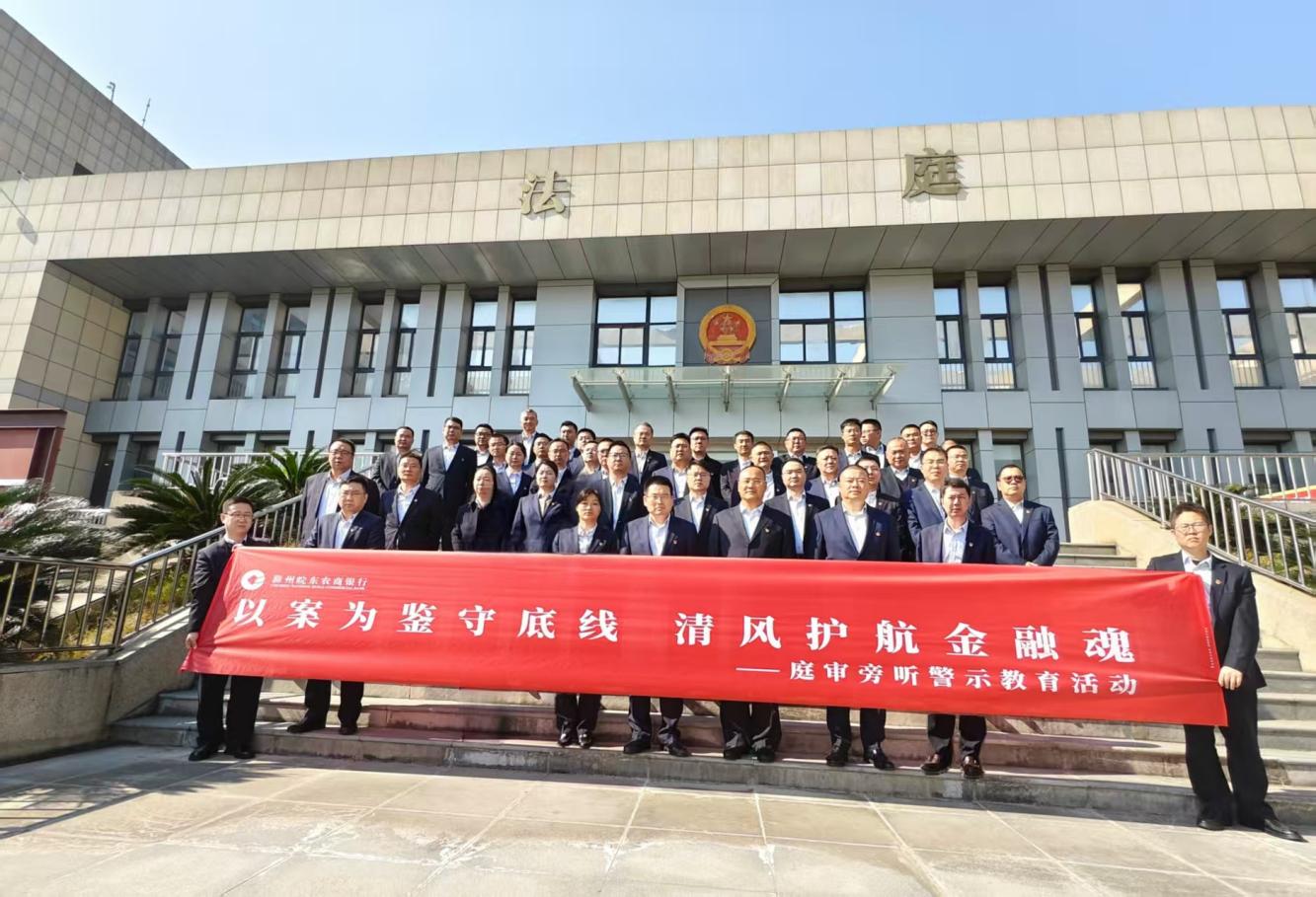 11月5日上午,滁州皖东农商银行组织开展庭审旁听警示教育活动。该行党委班子成员,各支行、部门负责人共计50余人现场旁听庭审接受警示教育。