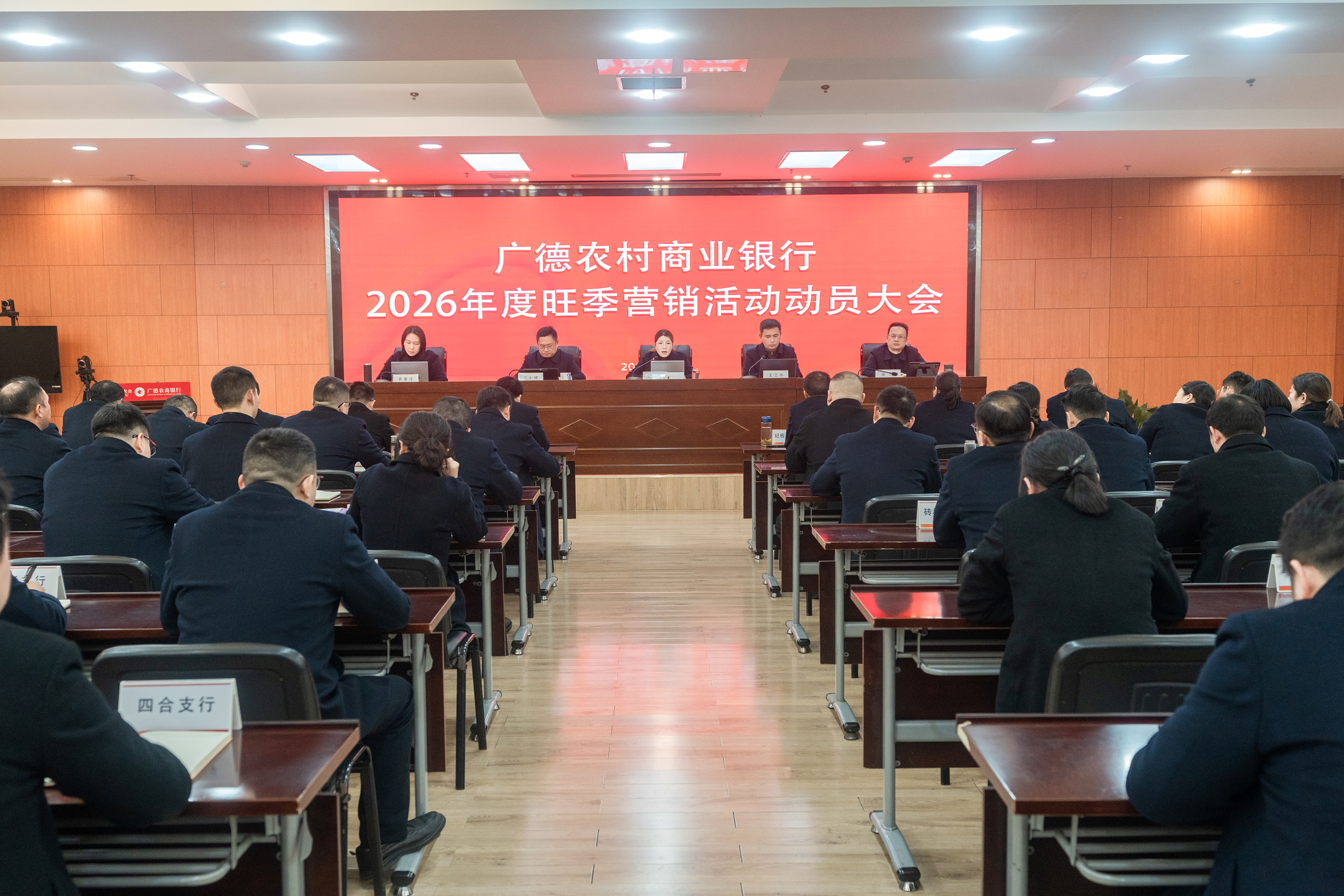 2025年12月30日晚,广德农商银行组织召开2026年度旺季营销活动动员大会。会议由党委委员、副行长王三华主持,总行领导班子成员,各部门总经理、副总经理,各网点负责人(含副职)及部分客户经理参加会议。