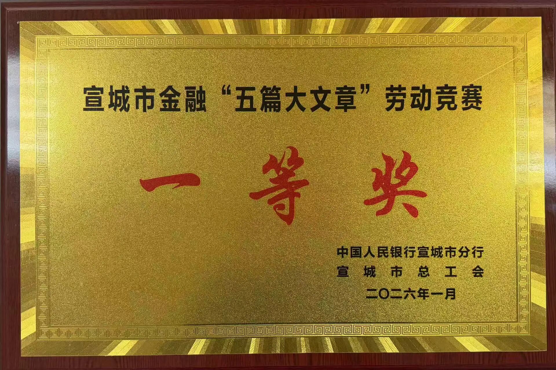 广德农商银行荣获宣城市金融“五篇大文章”劳动竞赛一等奖