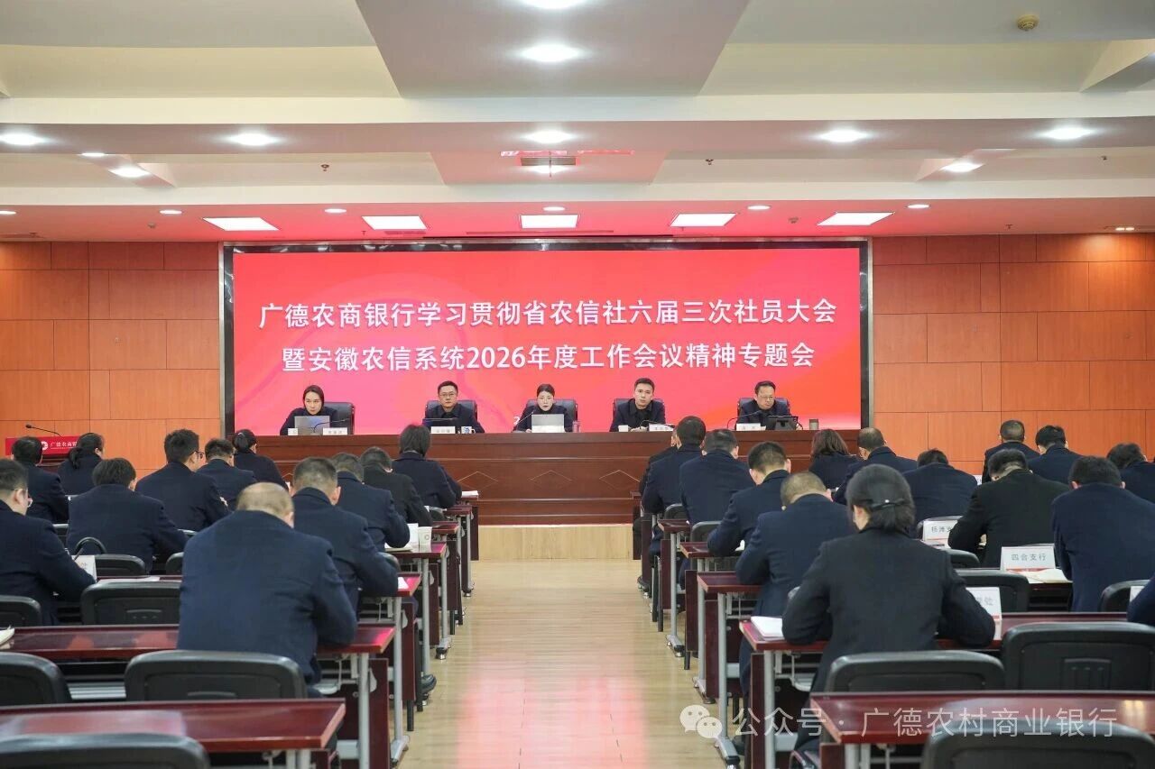 广德农商银行组织召开省农信社六届三次社员大会暨安徽农信系统2026年度工作会议精神传达会