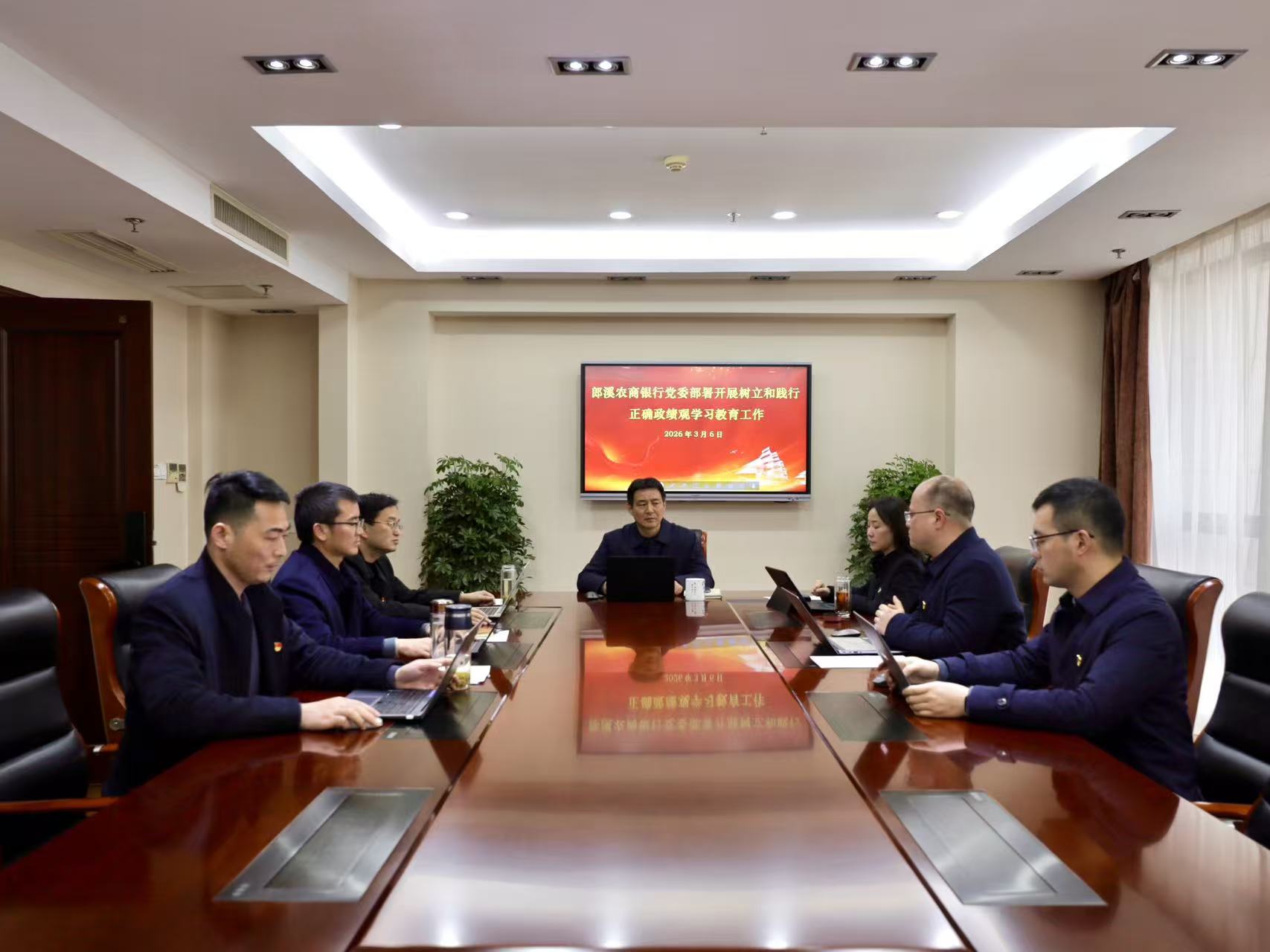 3月6日,郎溪农商银行党委书记徐元志主持召开党建工作领导小组会议,认真学习领会习近平总书记关于树立和践行正确政绩观的重要论述,传达学习中央党的建设工作领导小组会议、省委常委会、省农信社党委和有关通知精神。会议研究并审议通过了全行学习教育实施方案。党委副书记薛豆豆、党委委员唐明顺、党委委员曹国民、党委委员张磊出席会议。