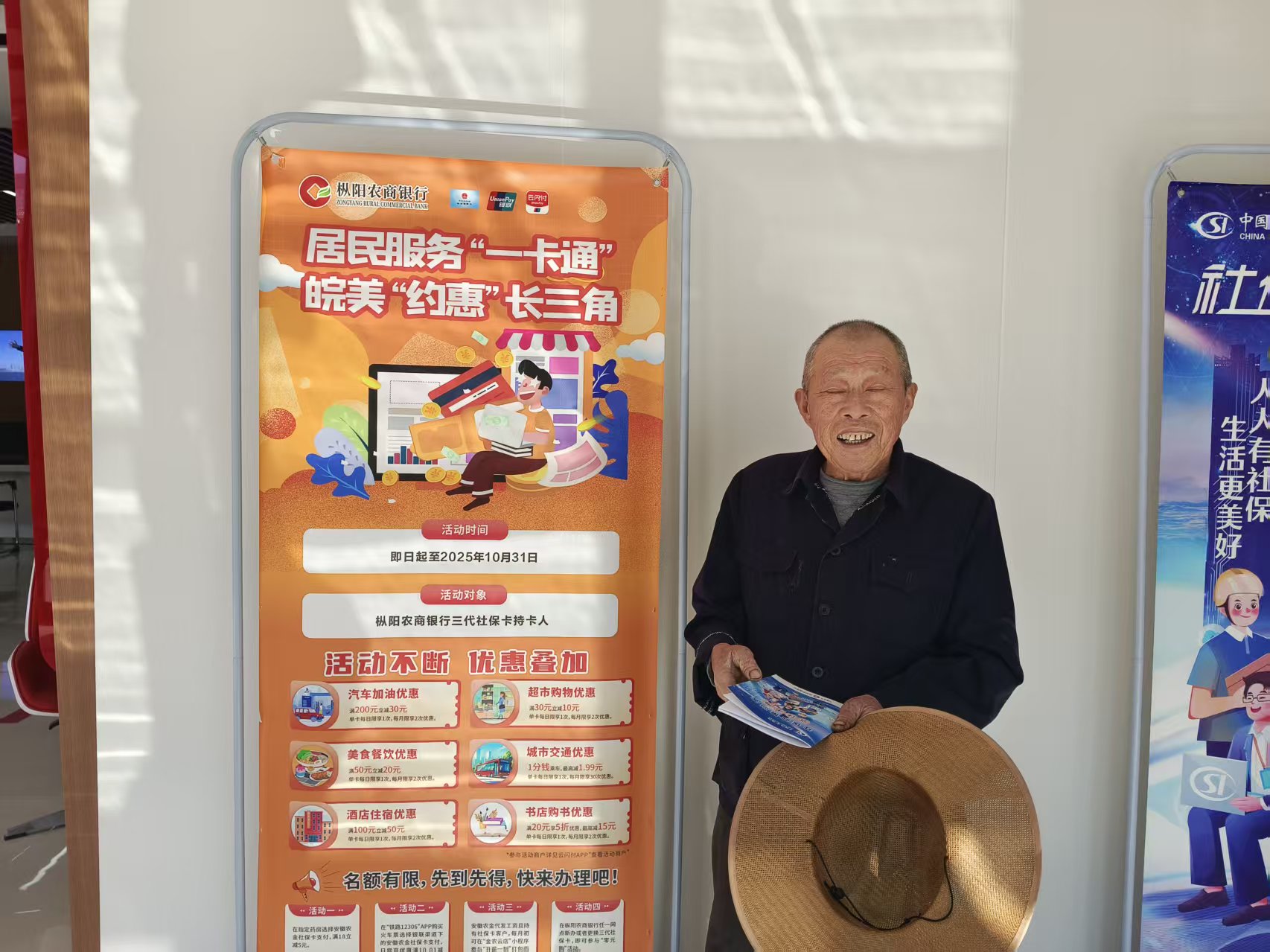 秋日的晨光漫过白柳镇的街巷,枞阳农商银行白湖支行网点里,橙色的宣传海报上“皖美‘约惠’长三角”的标语格外醒目,更动人的是藏在标语背后那些让生活更便捷、更暖心的民生细节。