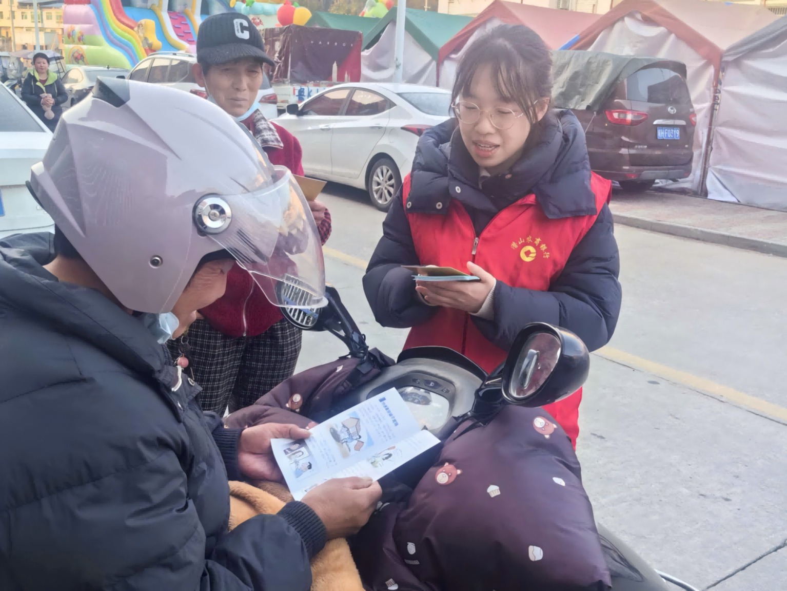 12月17日,潜山金融监管支局联合潜山农商银行五庙支行,在五庙街区人流密集区域组织开展了一场以“网络安全为人民,网络安全靠人民”和“守护钱袋子、护好幸福家”为主题的网络安全与防范电信网络诈骗宣传活动。活动旨在通过贴近群众、直面需求的宣教方式,将金融安全知识与反诈防骗技能精准送达基层百姓,特别是老年群体与个体商户等重点人群,合力筑牢金融安全防线。