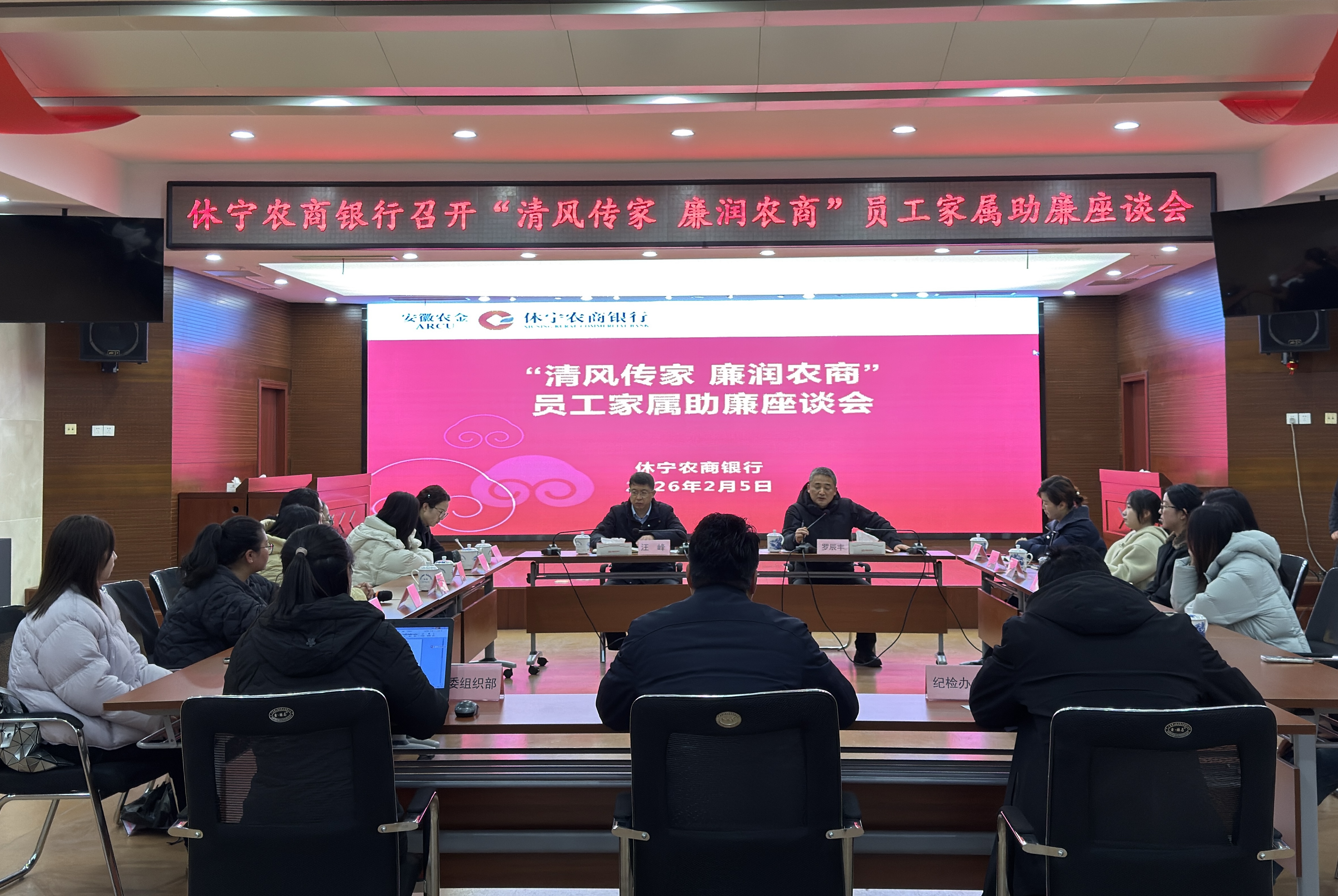 2月5日,休宁农商银行举办“清风传家·廉润农商”员工家属助廉座谈会。会议由党委委员、纪委书记罗辰丰主持,邀请了13名干部员工家属齐聚一堂,共话廉洁家风建设,共商家庭助廉新举措,筑牢“单位+家庭”双重廉洁防线。