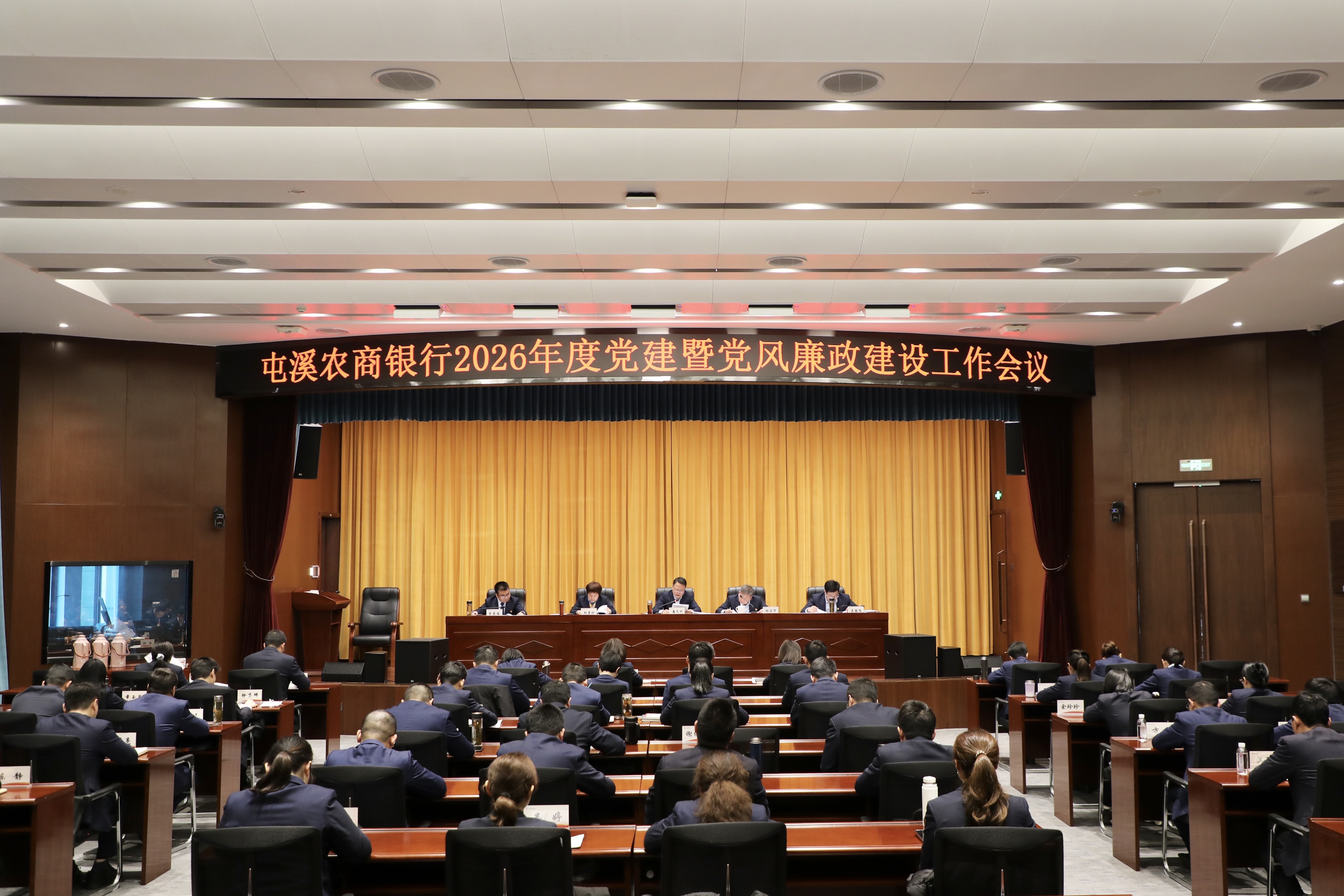 3月5日,屯溪农商银行在总行职工之家四楼会议室召开2026年度党建暨党风廉政建设工作会议及2026年“开门红”营销活动推进会。行领导班子、中层干部、各党支部书记及纪检委员等参加会议。