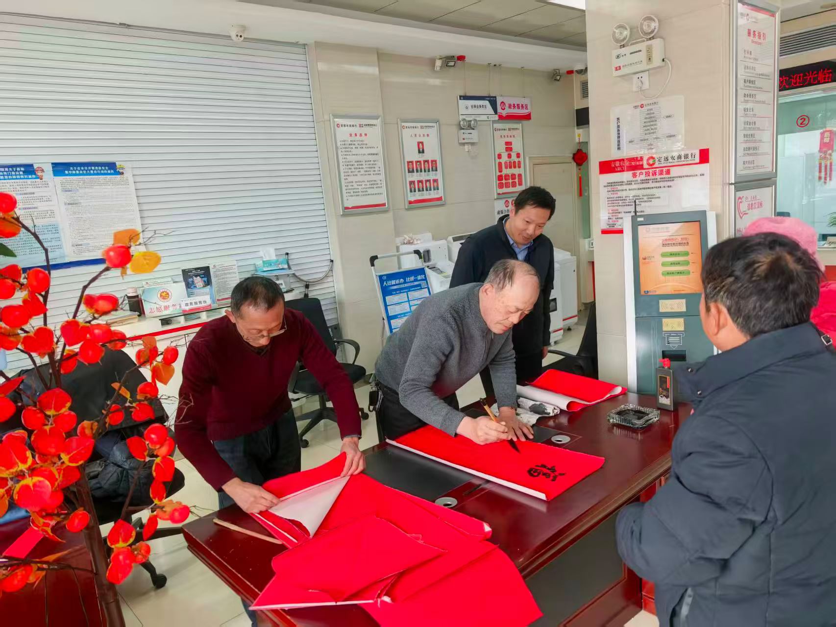 春节将至,定远农商银行邀请当地书法协会专家,亲临营业大厅,现场泼墨挥毫,书写春联,为前来办理业务的客户送上新春祝福。(徐曼)