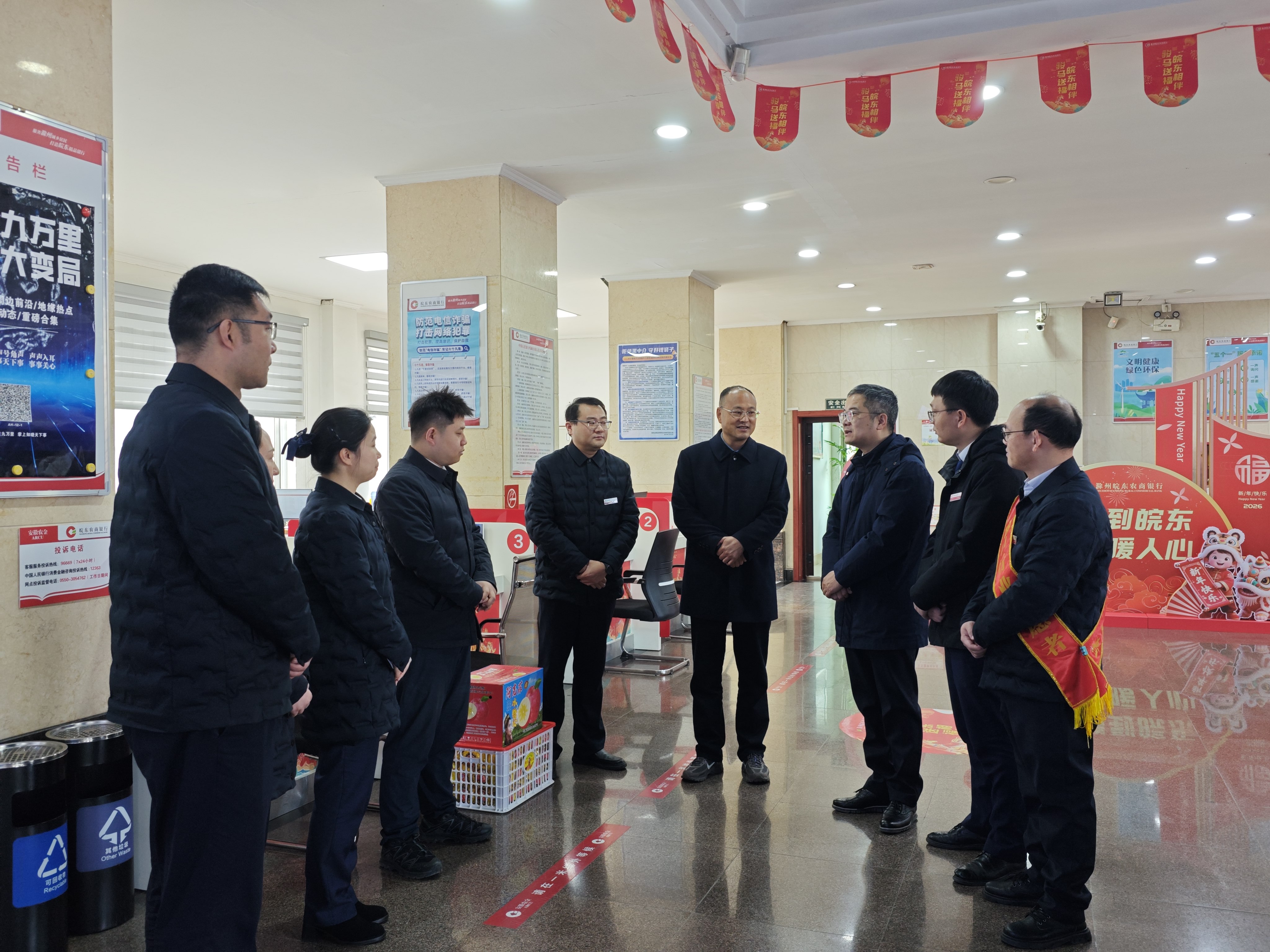 近日,在年终决算和元旦佳节到来之际,滁州皖东农商银行党委班子成员赴基层支行开展走访慰问,代表总行党委向坚守在一线的广大干部员工致以诚挚的问候和新年的祝福,并就岁末年初重点工作进行调研指导。