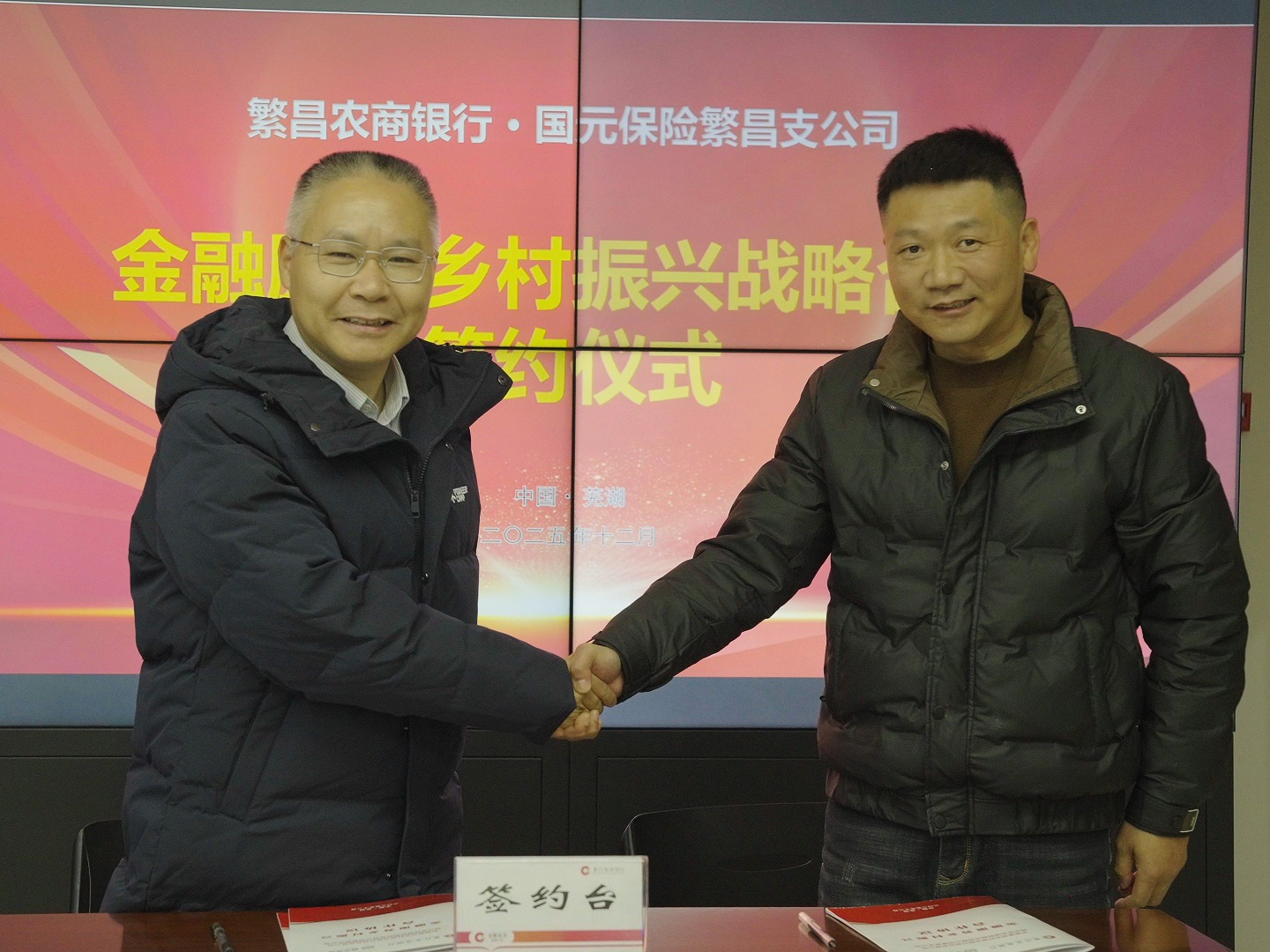 12月28日,繁昌浙江商会2025年会在繁昌区孙村镇万春茶原举办,繁昌农商银行党委副书记金敬东与该商会会长董国富现场签订会员企业集体授信15亿元框架协议。