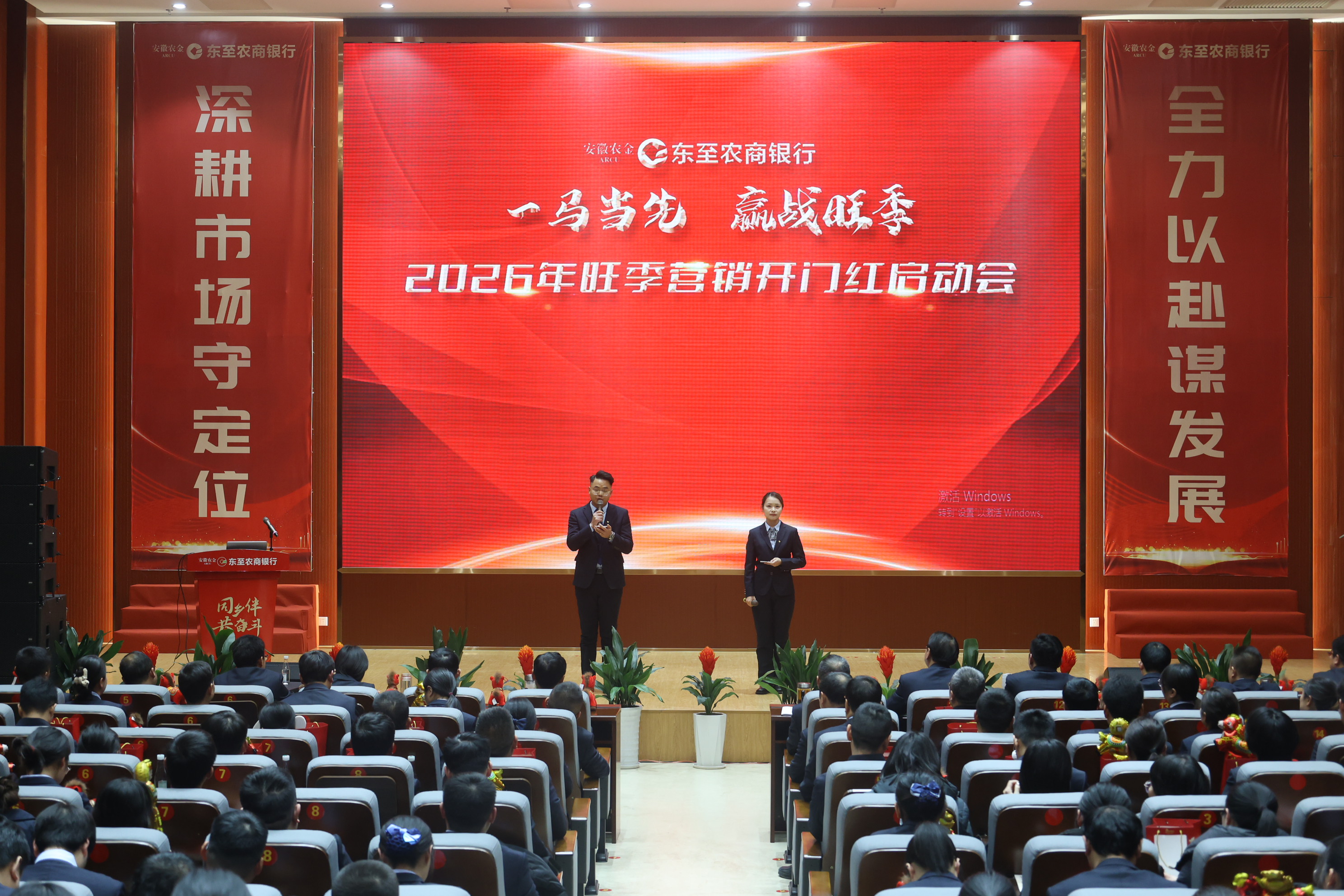春潮澎湃千帆竞,奋楫扬帆正当时!为凝聚全员力量、抢抓发展机遇,全力夺取2026年首季“开门红”。1月5日,东至农商银行召开“一马当先,赢战旺季”2026年旺季营销动员大会。行领导班子、全体中层干部、总行及各网点员工代表等共260余人齐聚一堂,共启征程。