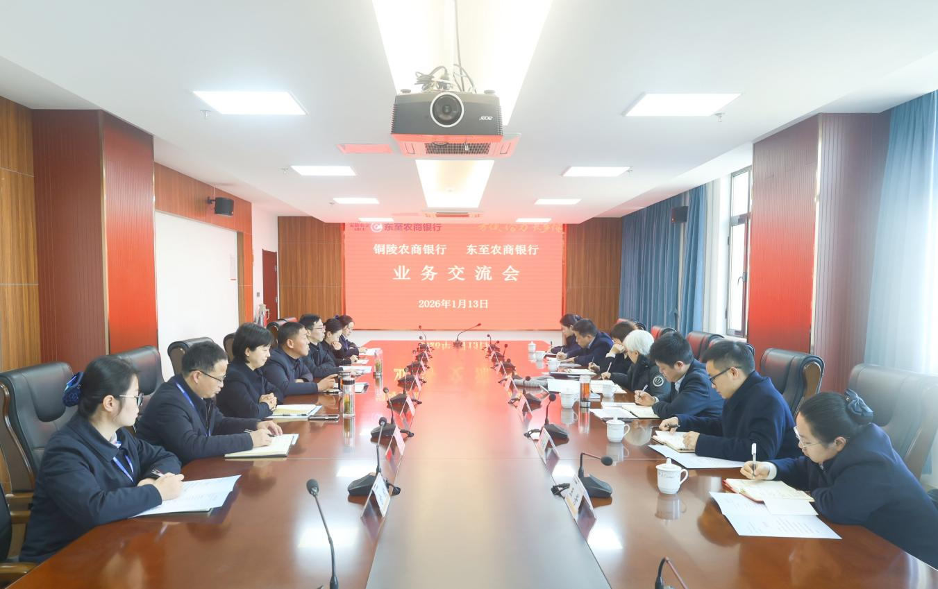 1月13日,铜陵农商银行党委书记、董事长吴玮带领班子成员、支行行长等到东至农商银行开展业务交流活动。东至农商银行领导班子及相关部门、支行负责人陪同交流,省农信社池州巡察组组长王翠萍出席会议。