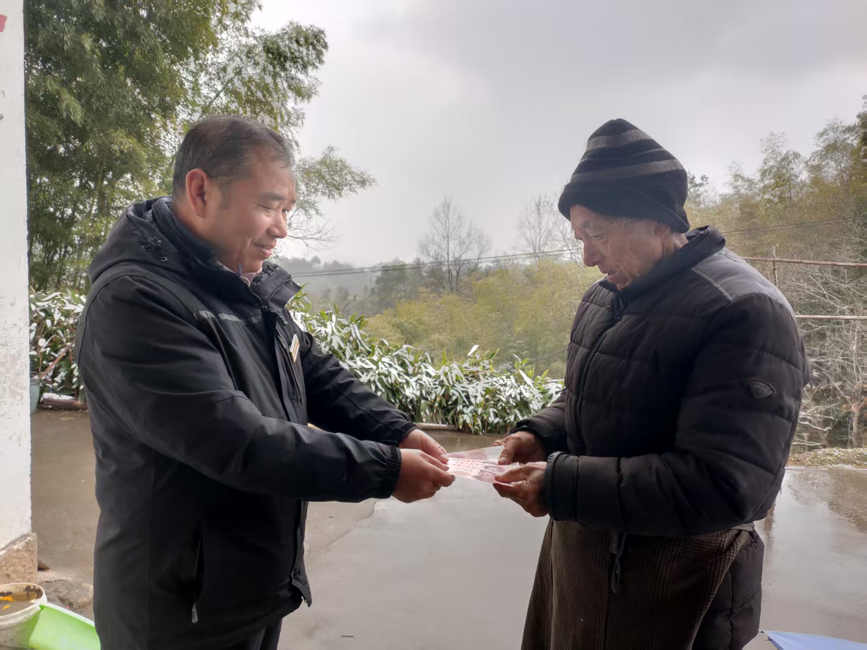 连日降雪气温骤降,给群众出行带来极大不便。然而,一场冒雪送还遗失钱款的暖心行动,却让这个寒冬充满了温情。歙县农商银行横关支行工作人员顶风冒雪驱车前往王村镇横联村,将老人遗失的400元现金亲手交还给汪大爷,用实际行动诠释了“群众利益无小事”的服务宗旨。