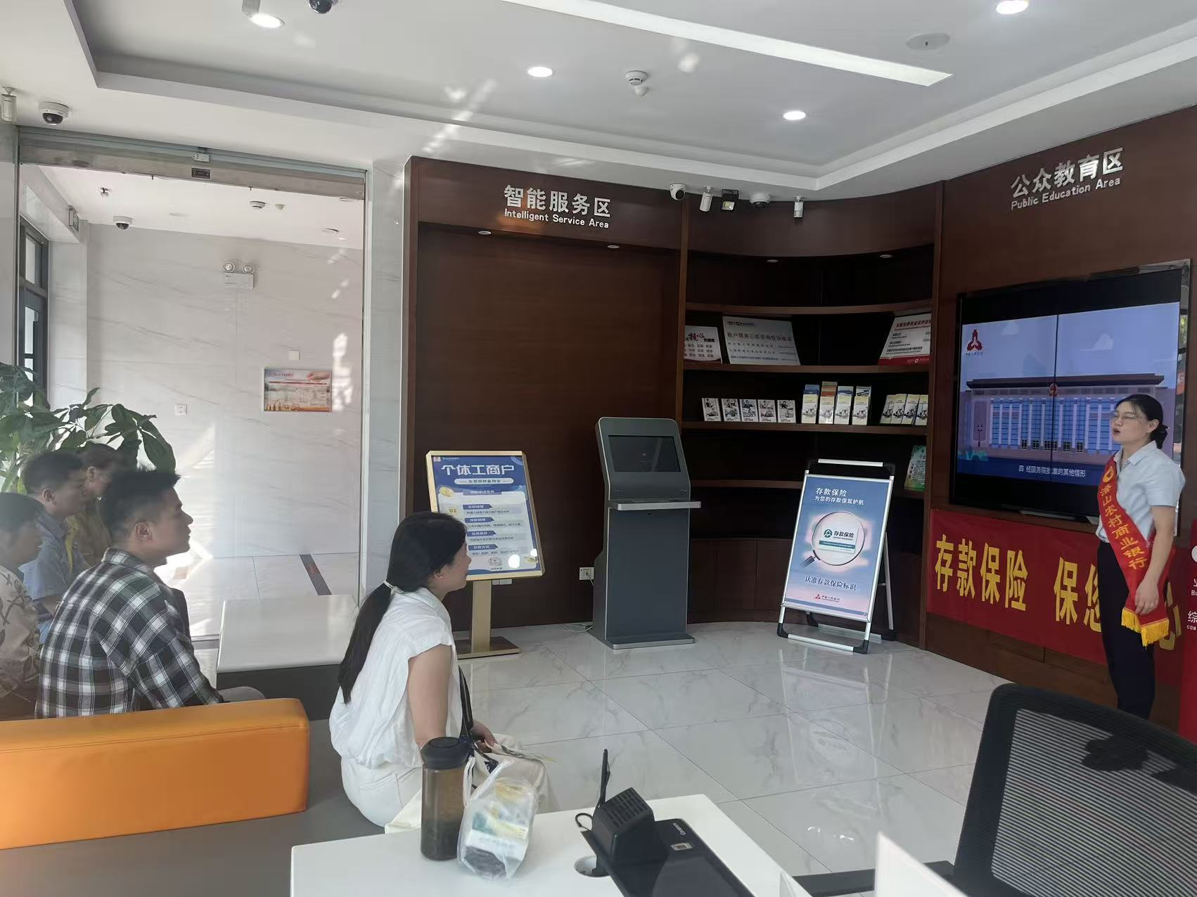 利用客户等候时间,在厅堂公众教育区,工作人员通过播放生动有趣的小视频、有奖问答等形式,向客户深入浅出地讲解存款保险制度。内容包括存款保险的概念、保障范围以及存款保险的覆盖机构、理赔流程等。这些小课堂有效消除了部分储户,尤其是老年储户对银行存款安全性的疑虑,增强了他们对银行的信任感。