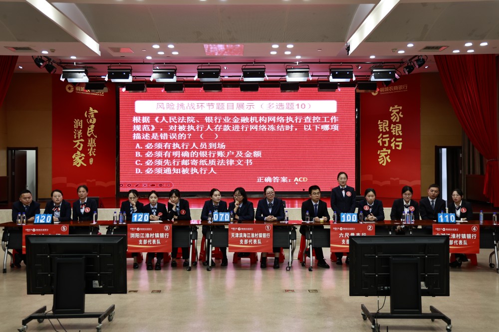 本次竞赛活动以“擦亮农信党旗红 合规案防我先行”为主题,来自全行及江淮村镇银行各党支部积极组队参赛。初赛阶段,来自全行31个基层党支部、93名选手同台竞技,经过笔试选拨,最终11支队伍、33名选手脱颖而出,晋级决赛。