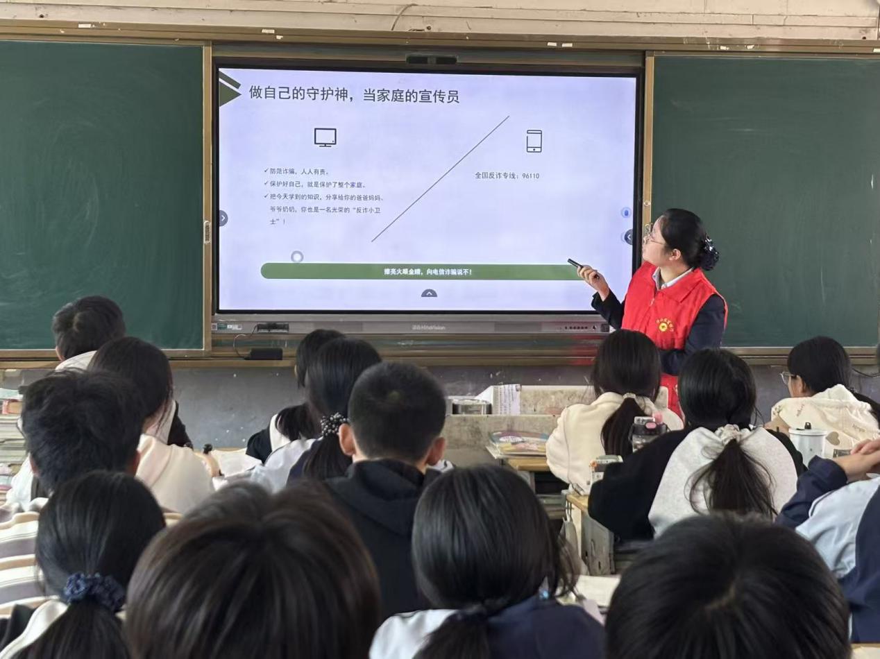 走进中学,筑牢青春防诈屏障。潜山农商银行黄铺支行走进潜山市黄铺中学,开展“反电诈・反假币”校园宣传教育活动。活动中,支行工作人员通过课件讲解、实物教学、知识抢答等形式,系统讲解电信诈骗的常见类型、识别方法和应对策略。针对中学生易接触的“微信家长群收费”“兼职刷单”等骗局,工作人员结合真实案例,传授“四不法则”和“三不一多”原则,帮助学生快速掌握反诈要点。现场互动热烈,同学们在寓教于乐中增强了自我保护能力。校方老师表示,此次活动丰富了课后服务内容,实现了“教育一个学生,带动一个家庭”的良好效果。