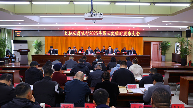 11月20日上午,太和农商银行2025年第三次临时股东大会在总行八楼会议室召开。公司股东、董事、太和金融监管支局负责同志、行领导班子成员参加,行党委书记、董事长刘鹏飞主持会议。