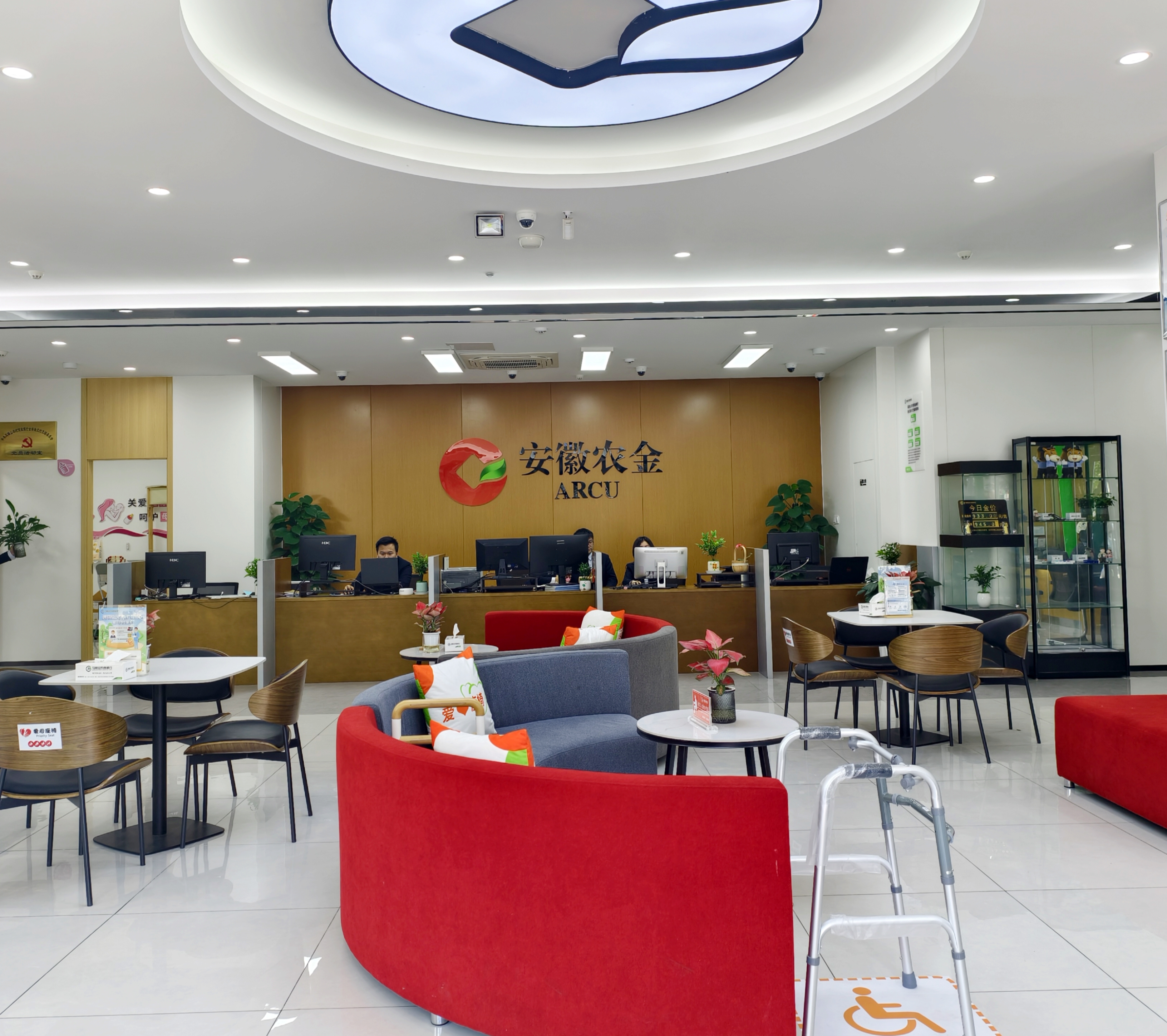 “长春花”品牌寓意“青春不老、健康长寿”,是安徽省适老化支付服务统一特色名片,旨在通过标准化建设破解老年群体支付与服务痛点。金安路支行精准对接多元需求,构建“日常便利+安全保障+特殊关怀+场景延伸”全周期服务体系:日常层面配备切药磨药器、分类药盒、便携式放大镜等便民用品,解决老年群体生活刚需;安全层面增设扶手架筑牢防护防线;特殊关怀层面通过液晶小黑板、助盲识币签名卡,保障聋哑、视障群体服务权益;场景拓展层面打造室外休憩区与“皖美支付、乐龄无忧”展示区,实现服务体验与金融科普双提升。