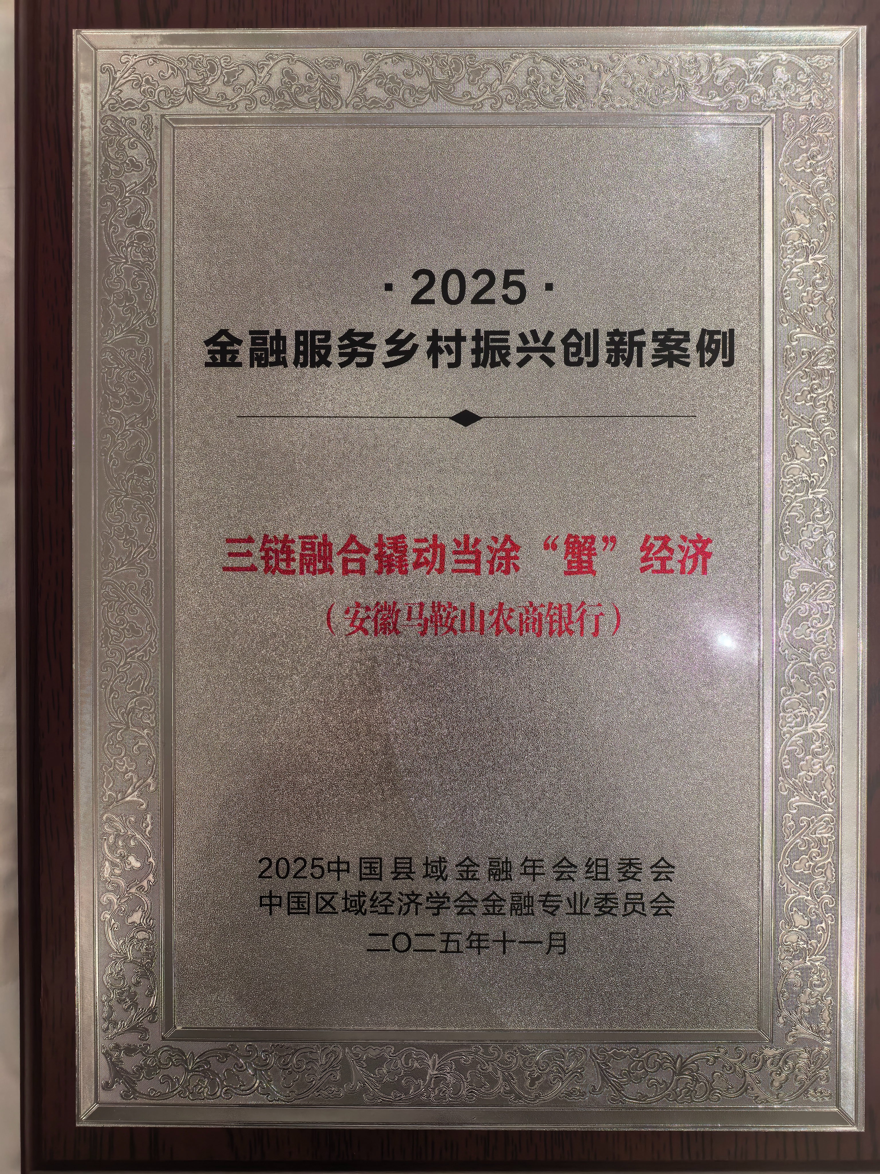 11月29日,在以“金融服务乡村振兴实践与创新”为主题的中国县域金融年会上,马鞍山农商银行申报的《三链融合撬动当涂“蟹”经济》案例,经专家委员会严格评审、复核,成功获评“2025金融服务乡村振兴创新案例”,充分彰显了该行在服务乡村振兴领域的创新实力与示范引领作用。