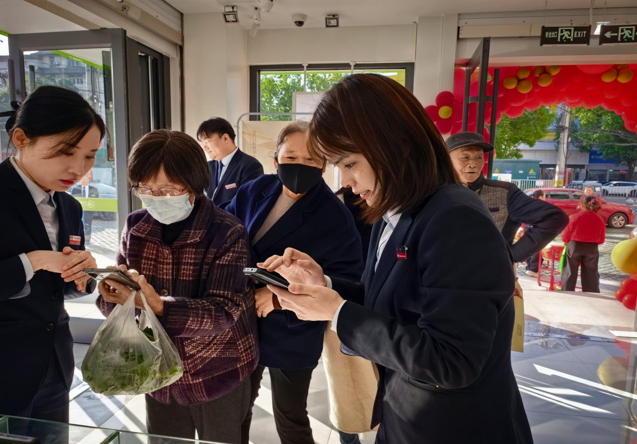 搬迁开业当天,当涂开发区支行精心筹备了丰富多彩的惠民活动,吸引了众多新老客户驻足参与。关注“金农云店”即可免费领取鸡蛋,推荐亲友办理社保卡还能赢取微信立减金,一系列实打实的福利让现场客户惊喜不断、好评连连。热闹的活动氛围不仅拉近了与客户的距离,更传递了支行焕新服务的诚意。