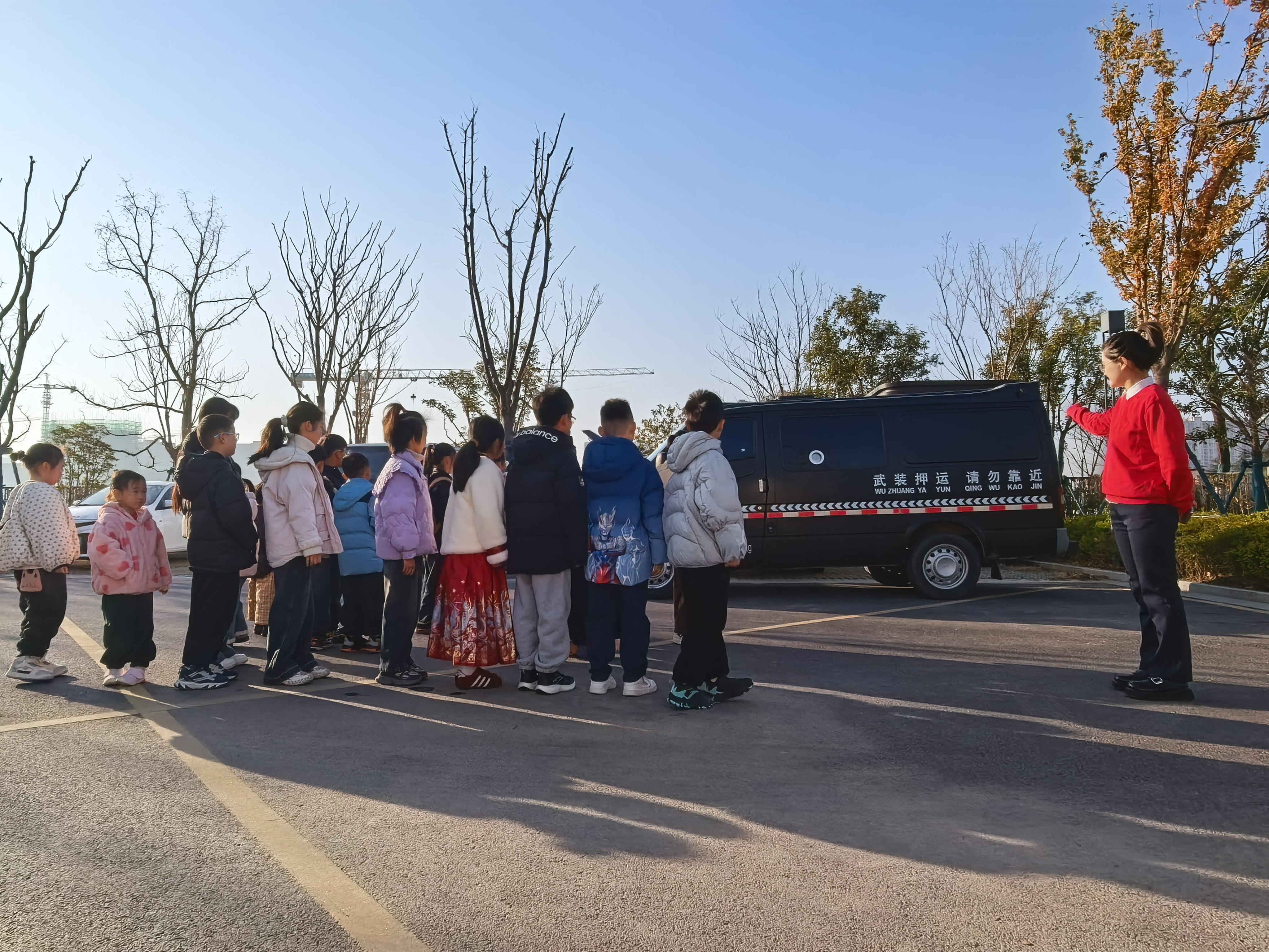 在工作人员的引导下,孩子们首先近距离观摩了银行押运车,学习押运安全知识,亲身感受金融安全守护的严谨与专业。随后,大家有序进入营业大厅,依次了解咨询台、叫号机、业务窗口等功能区域,通过生动讲解,初步认识了银行的日常服务流程。