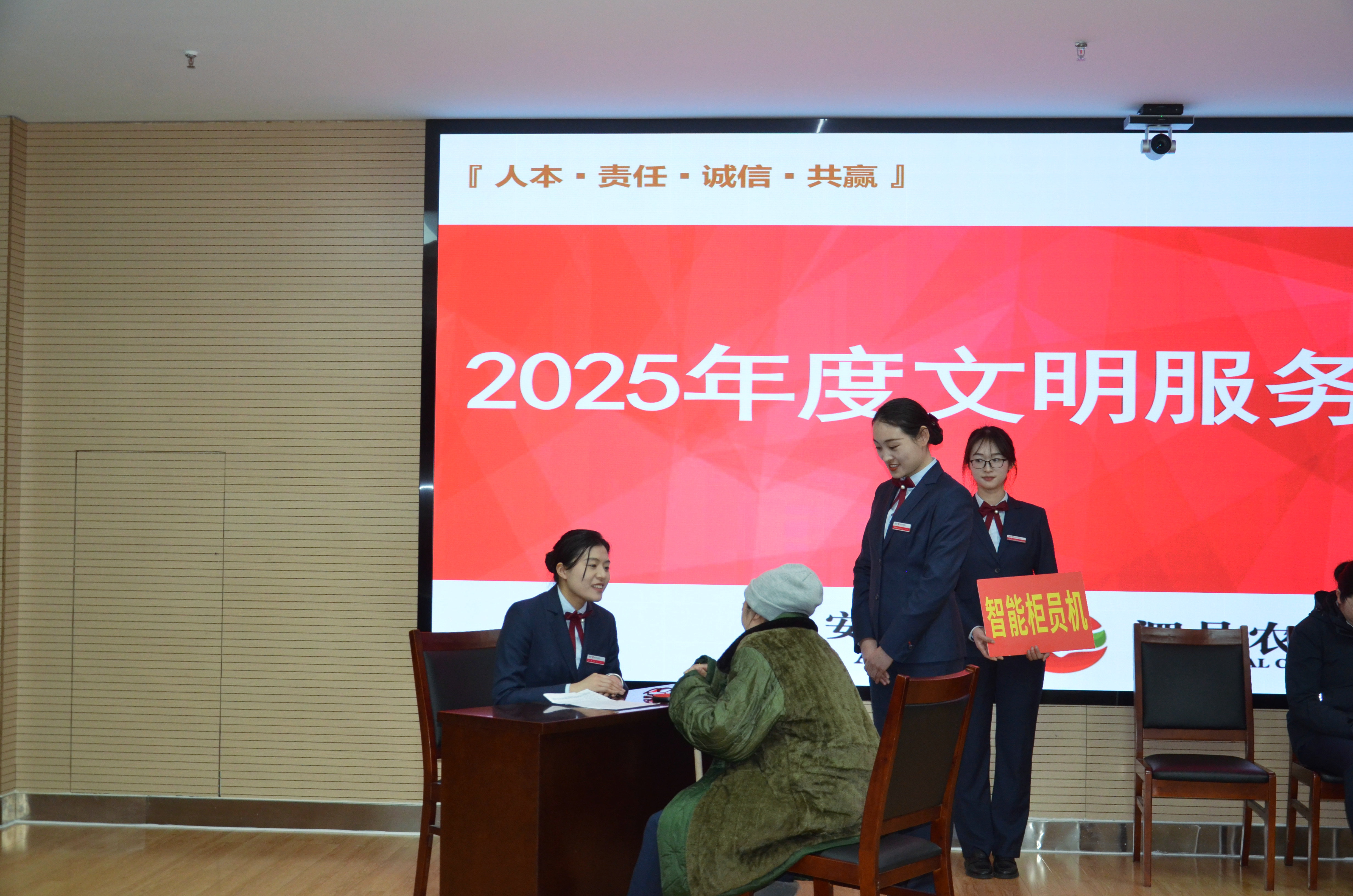 1月7日,泗县农商银行组织开展2025年度文明服务评比活动。全辖26家支行组成6支参赛队伍同台竞技,通过晨会展示与情景展示两大环节,以赛促学、以赛促练,全面检验和提升一线服务水平。