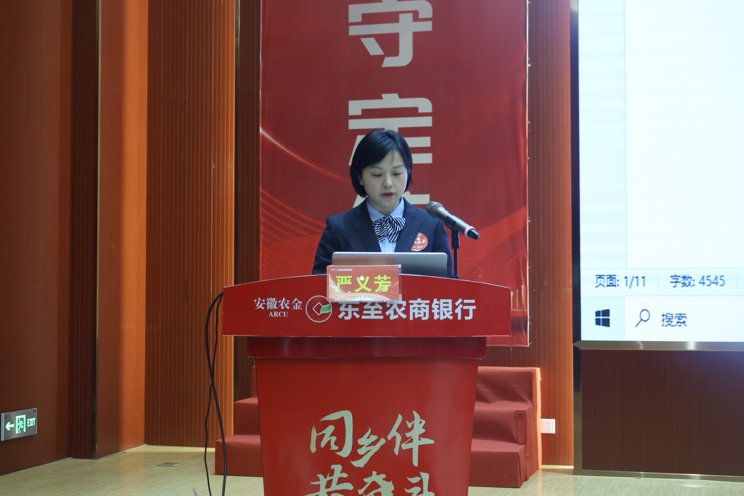 党委委员、副行长严义芳对《2026年东至农商银行旺季营销活动方案》及《2026年东至农商银行旺季贷款客群提升攻坚活动方案》进行解读。
