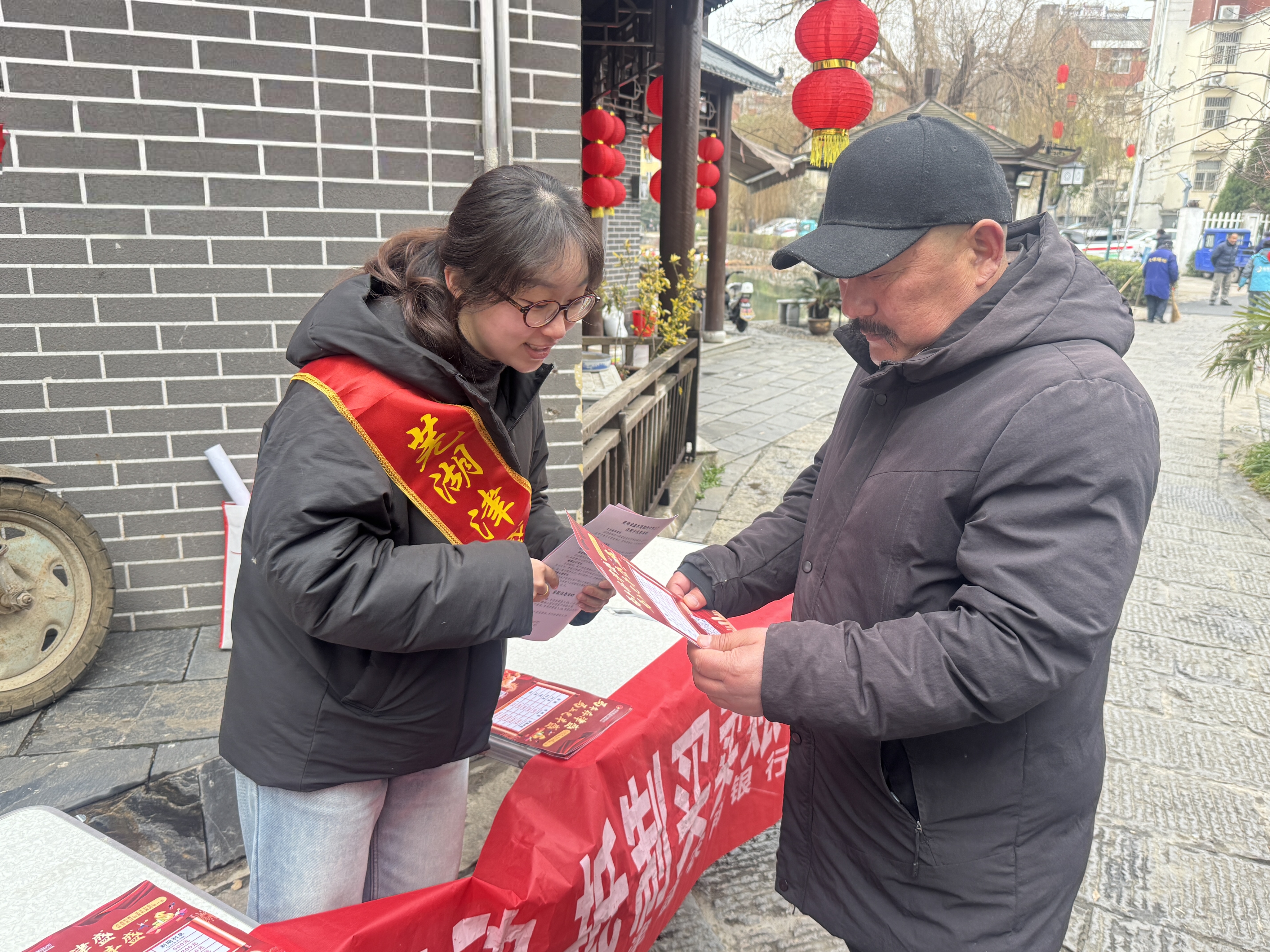 在六郎镇水八仙潮玩年货市集现场,针对节日期间可能出现的金融风险,该行将金融知识普及作为服务重点。工作人员结合真实案例,用通俗易懂的语言向群众揭示非法集资的常见手法与危害,提醒大家树立理性投资观念,守住“钱袋子”。此外,通过对存款保险制度的深入解读,进一步增强了公众对银行体系的信任感,营造了安全、放心的金融环境。