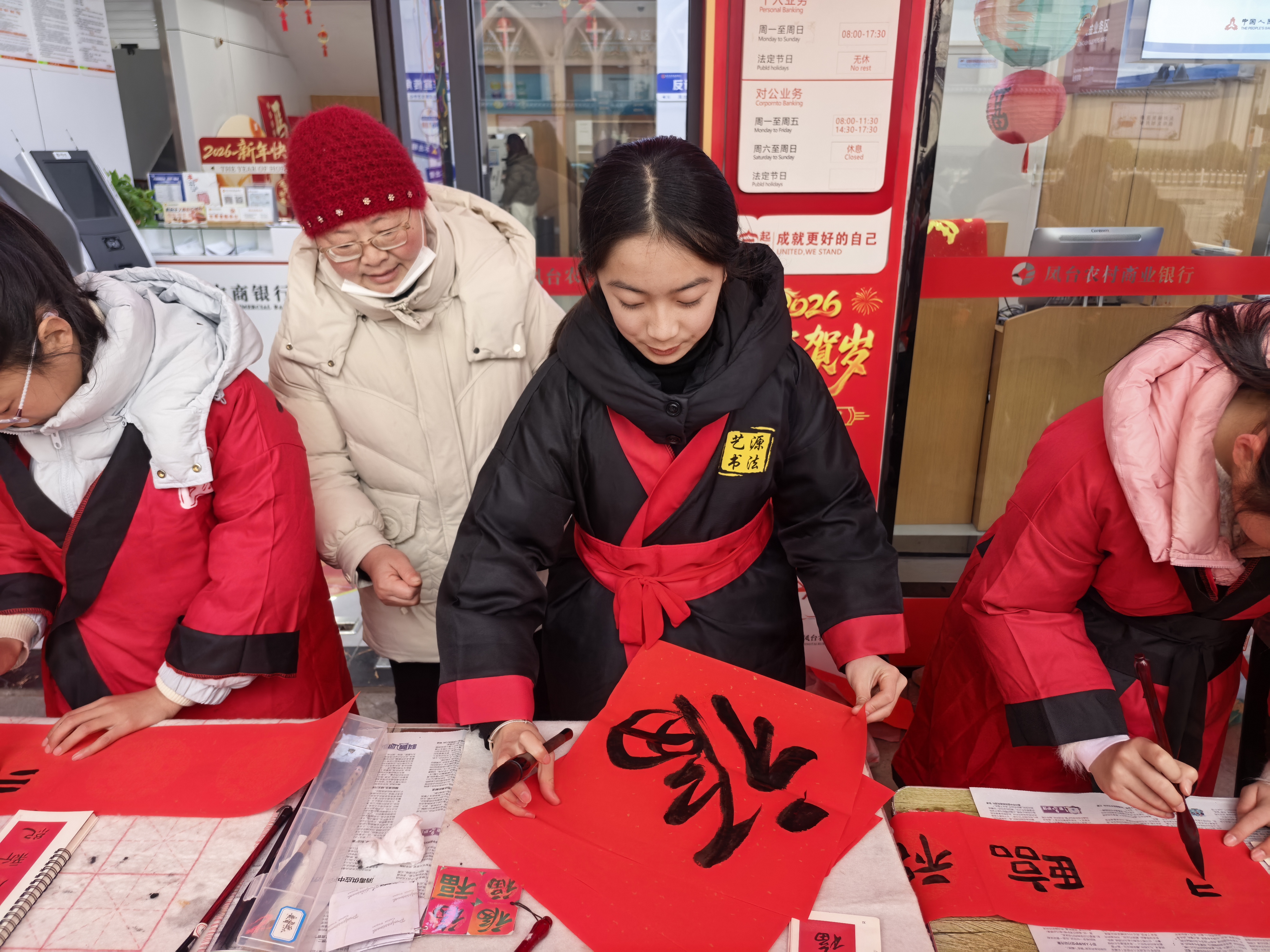 近日,凤台农村商业银行银河支行联合书法机构,在凤凰湾小区、支行门前举办“童心写春联”公益活动,以笔墨为媒滋养童心,用稚嫩笔触书写祝福,让传统年味、书法魅力与金融温情在寒冬中交融绽放。