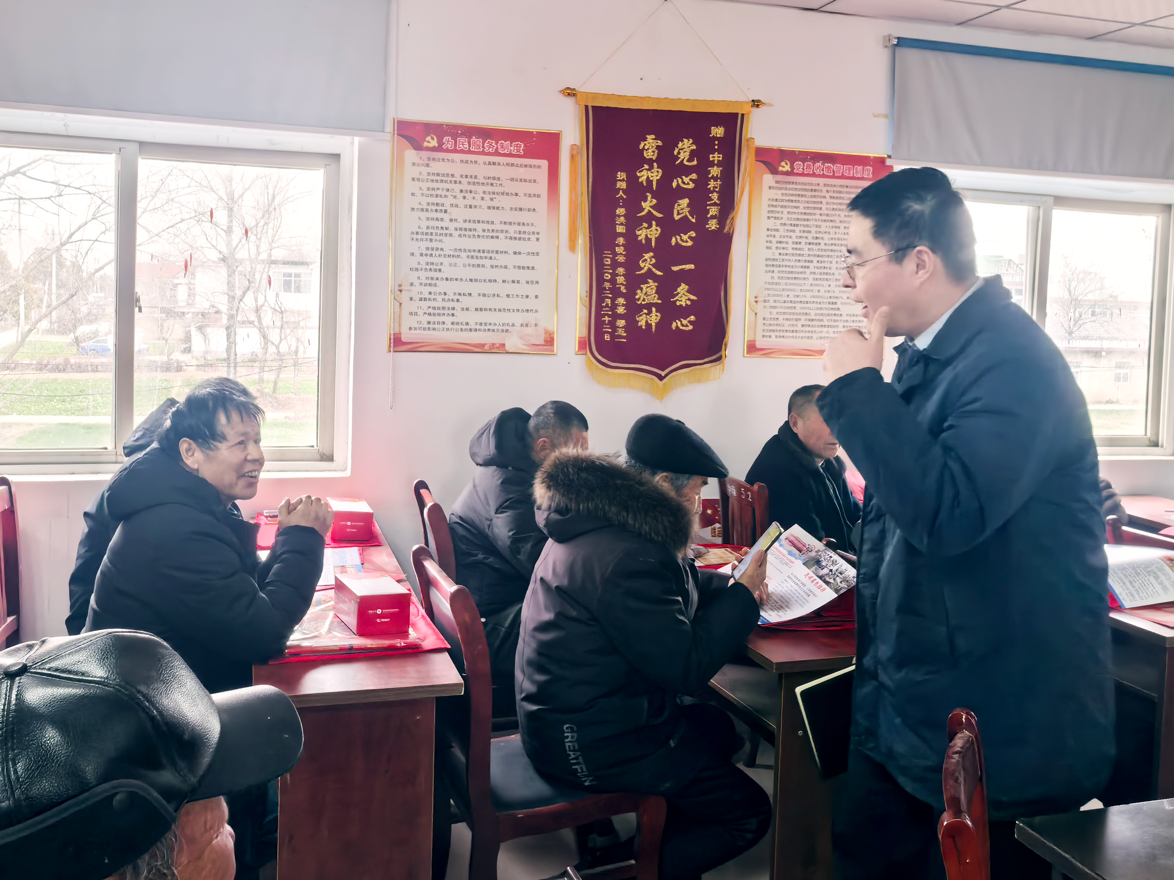 2月9日,凤台农村商业银行钱庙支行组织工作人员走进钱庙乡中南村,借助村党支部党员大会契机,开展专场反诈宣传活动,将金融安全知识与反诈提醒送到广大群众身边。