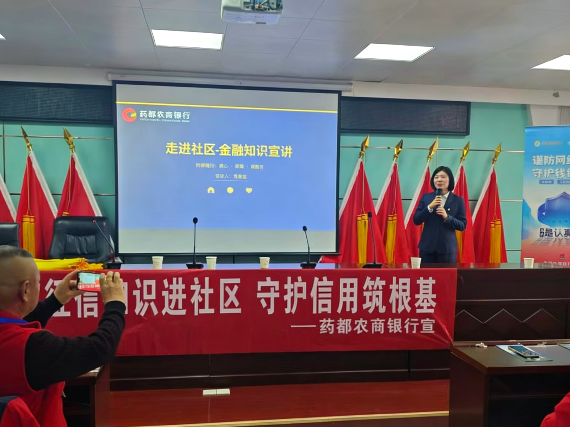 药都农商银行打破传统宣传壁垒,让征信知识走进群众身边,真正实现“听得懂、记得住、用得上”。魏武支行主动下沉社区一线,开展金融知识专题宣讲,现场解答“征信是什么”“不良征信有啥影响”等群众关心的问题,引导居民主动守护自身信用“名片”。上善名郡支行则以厅堂服务为阵地,将征信宣传融入服务全过程,工作人员化身“征信宣传员”,在办理业务间隙,针对不同客户群体精准讲解征信知识,实现“办理一笔业务、普及一次知识、守护一份信用”的良性循环,让每一次服务都成为传递信用温度的载体。