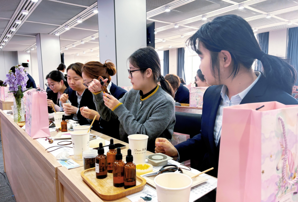 午后,银行会议室暖意融融,一场氛围感十足的香薰制作活动温情启幕,大家踊跃参与、相互交流,在动手创作的过程中舒缓压力、陶冶情操,现场欢声笑语不断,处处洋溢着轻松愉悦的节日氛围,充分展现了女员工们积极向上、热爱生活的精神风貌。