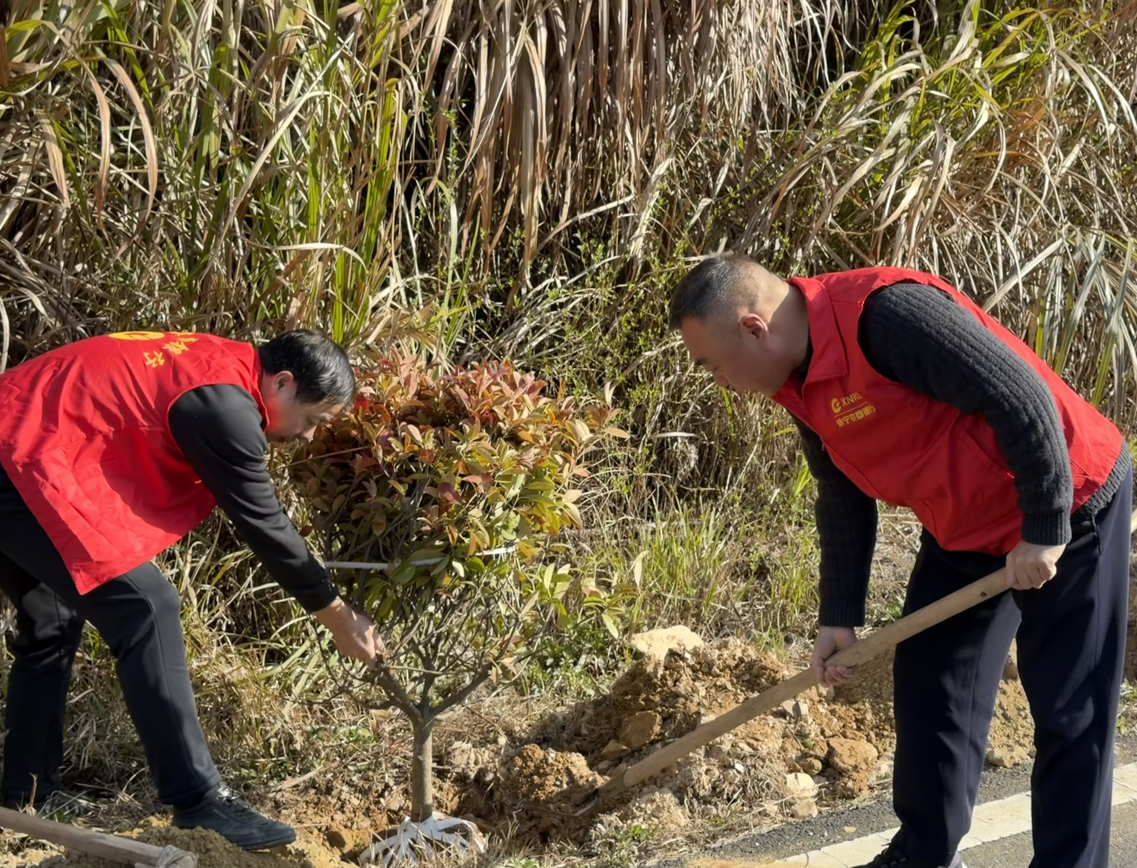 活动现场,身着红马甲的志愿者们热情高涨、干劲十足。大家分工协作、默契配合,挥锄挖坑、扶苗填土,每一道工序都一丝不苟。经过一番辛勤劳作,一株株新栽种的树苗迎风挺立,错落有致,为原本空旷的土地增添了盎然绿意,也在春风中播下了绿色的希望。