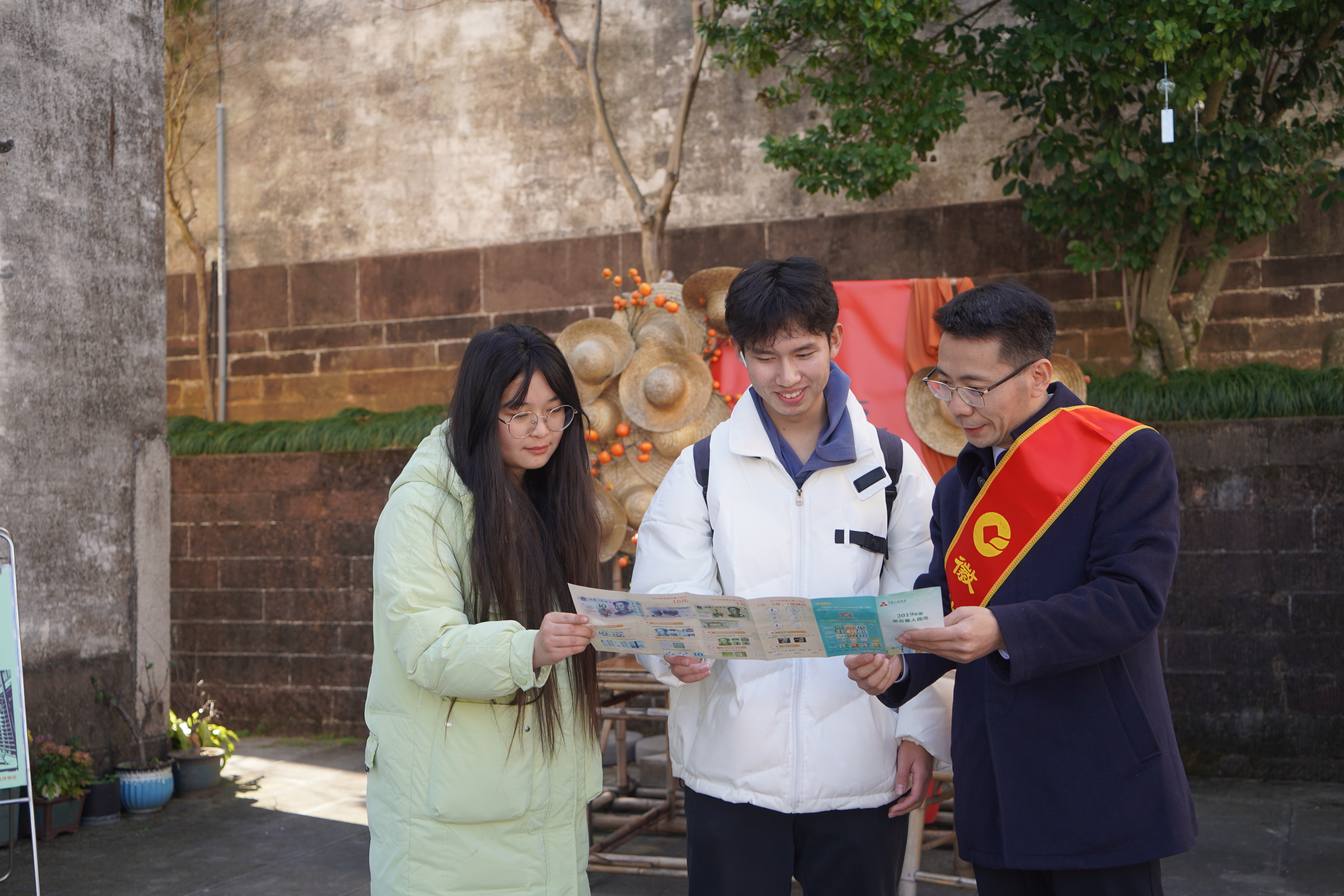 “打卡徽派古建,别踩洗钱陷阱!借银行卡给朋友收转账,堪比拆了古宅的‘防火墙’,既害自己又毁美景哦!”在标志性的马头墙打卡点,志愿者拦住驻足拍照的年轻游客,用趣味问答拉近距离,不少游客主动接过宣传折页。游客们纷纷点赞:“没想到逛古宅还能学金融知识!” 红马甲的志愿者穿梭在青石板巷弄里,与灰墙黛瓦、雕梁画栋相映,成为古宅中一道“安全风景线”。
