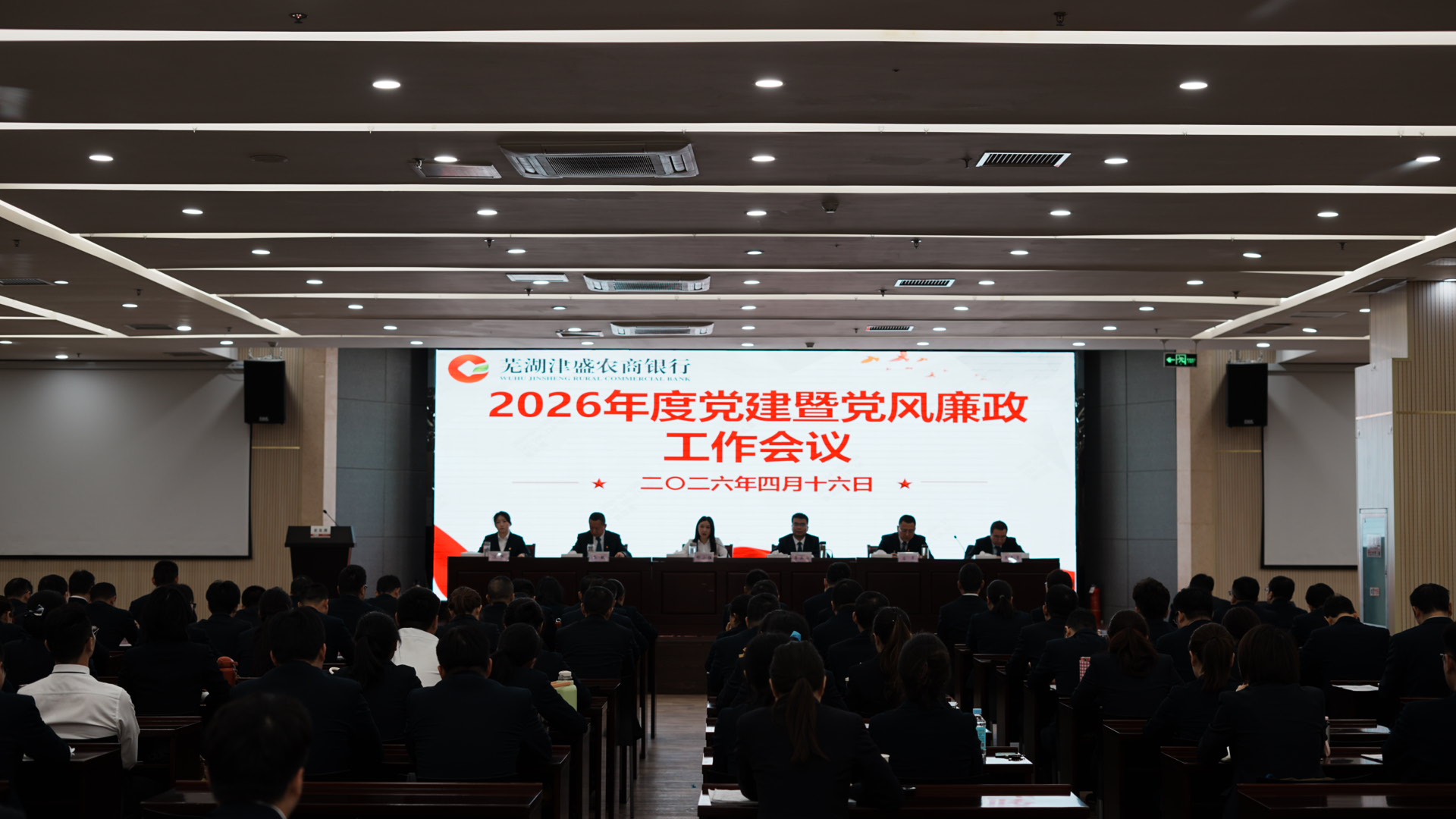 4月16日,芜湖津盛农商银行召开2026年度党建暨党风廉政建设工作会议。行党委班子成员,各党支部书记、部门正副总经理(总经理助理)、支行行长、部分党员及职工代表参加会议,会议由行党委书记郁小伍主持。